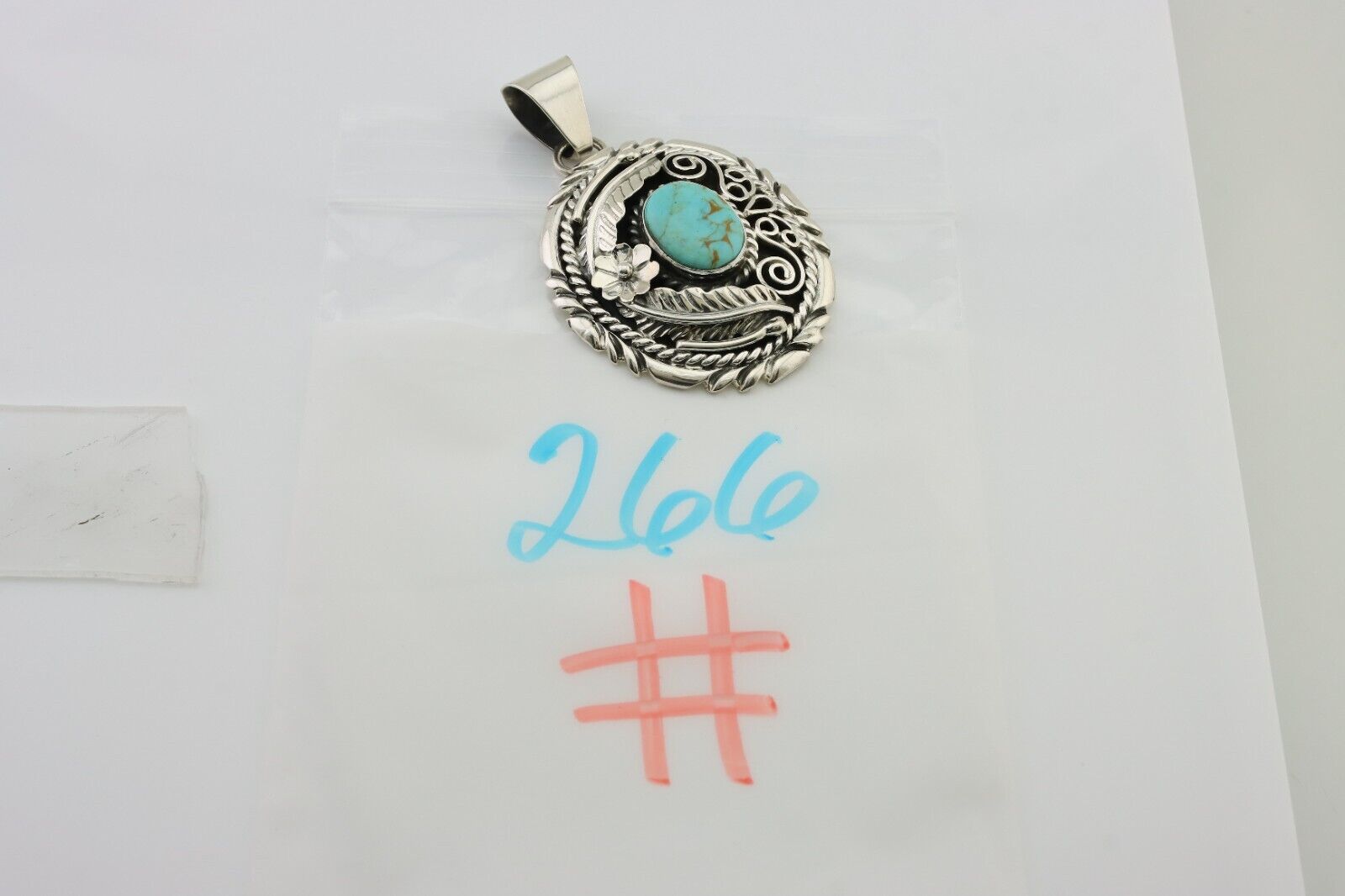 Navajo Pendant 925 Silver Kingman Turquoise Native American Artist C.80s