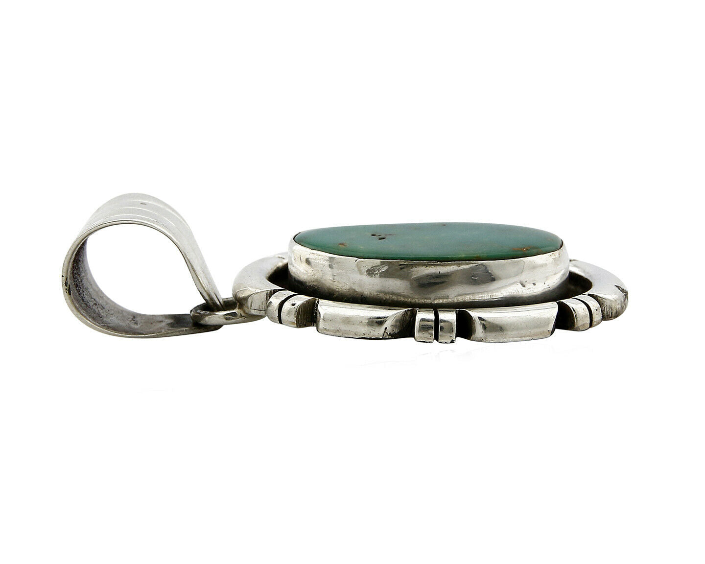 Navajo Pendant .925 Silver Kingman Turquoise Signed Artist JT C.80's