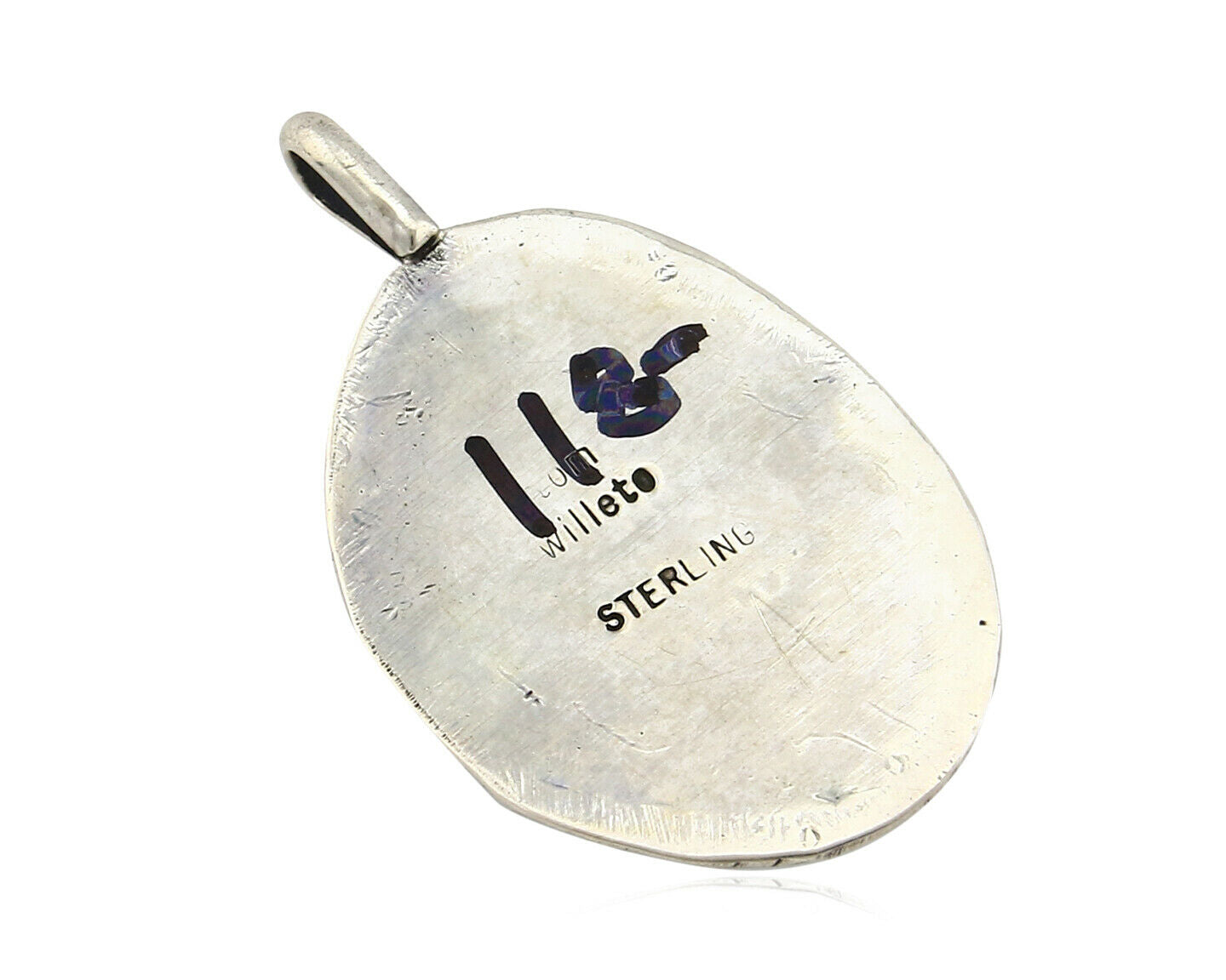 Navajo Pendant .925 Silver Kingman Turquoise Signed Artist Tom Willeto C.80's
