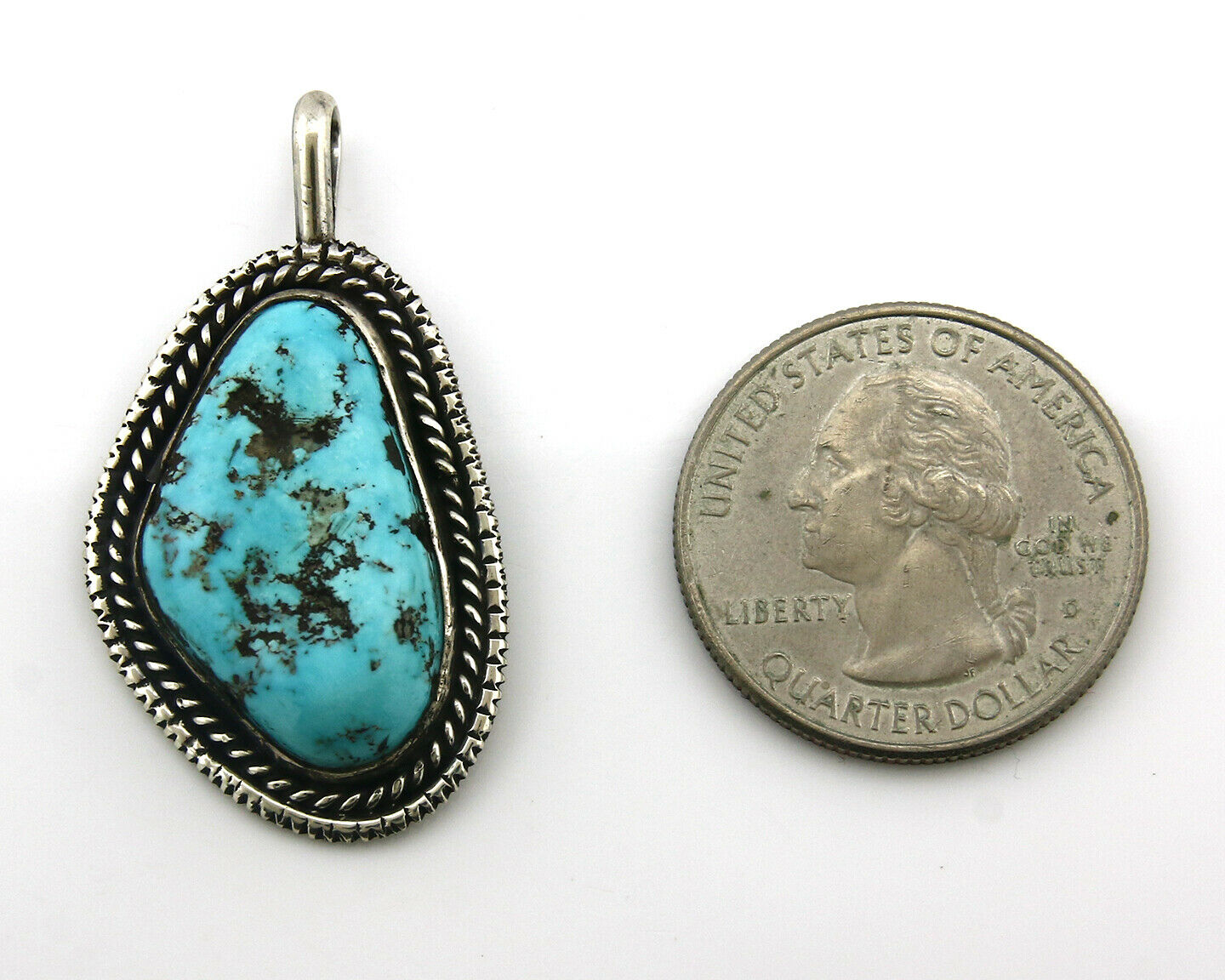 Navajo Pendant .925 Silver Kingman Turquoise Signed Artist Tom Willeto C.80's