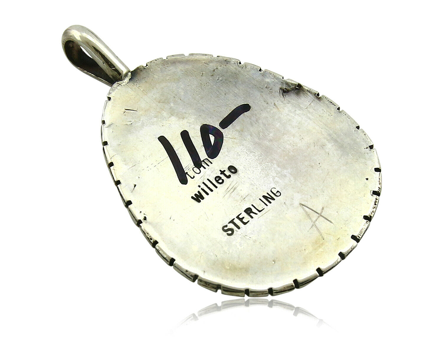 Navajo Pendant .925 Silver Kingman Turquoise Signed Artist Tom Willeto C.80's