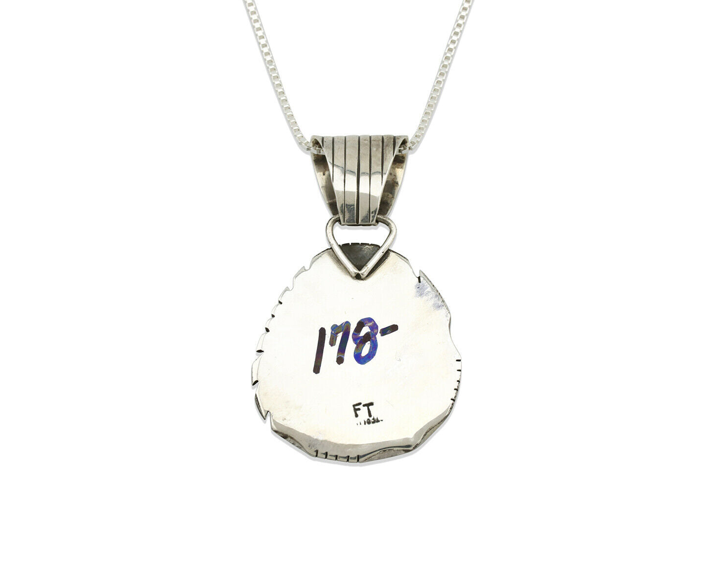 Navajo Pendant .925 Silver Manassas Turquoise Signed FT C.80's