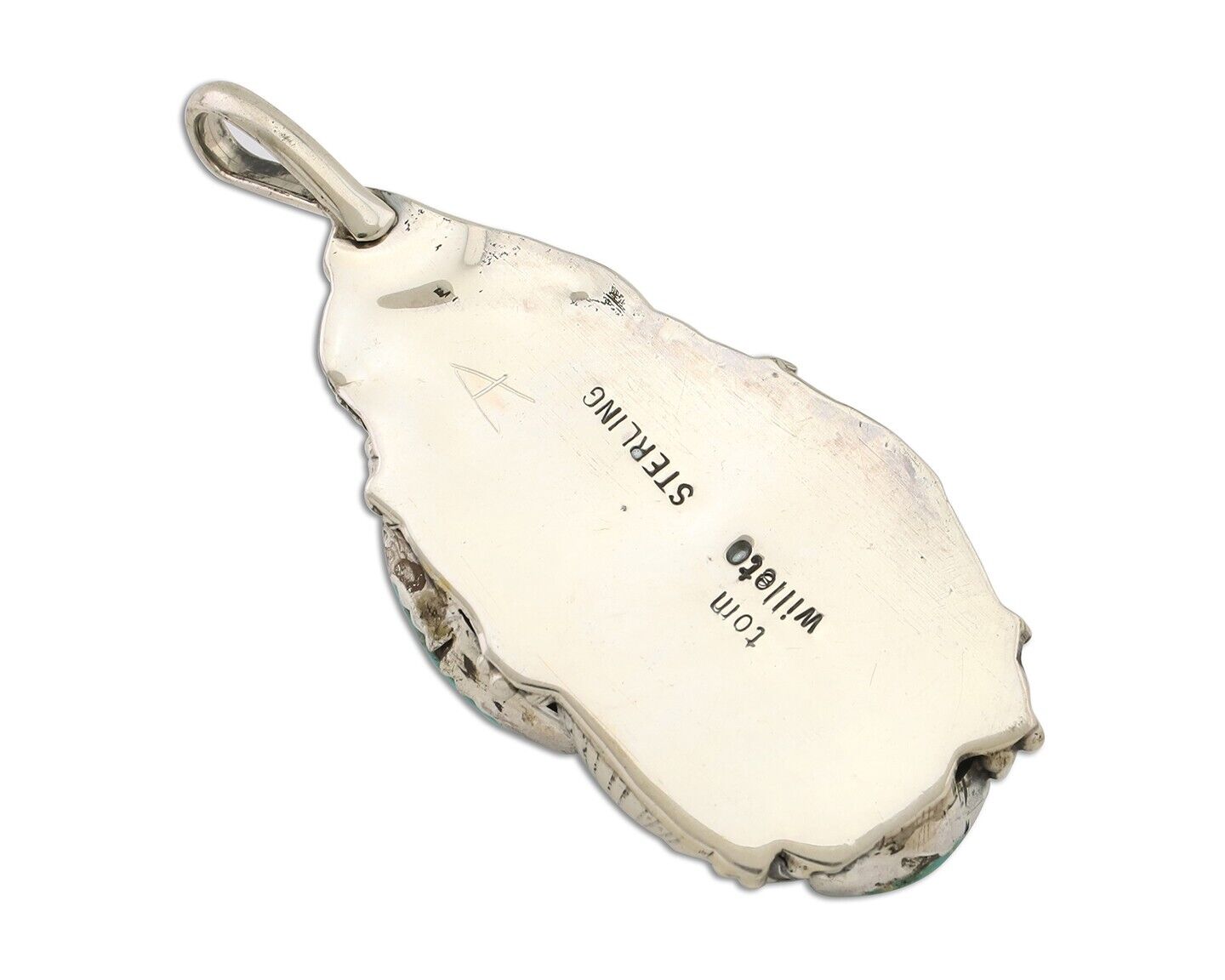Navajo Pendant 925 Silver Natural Bisbee Turquoise Signed Tom Willeto C.80's