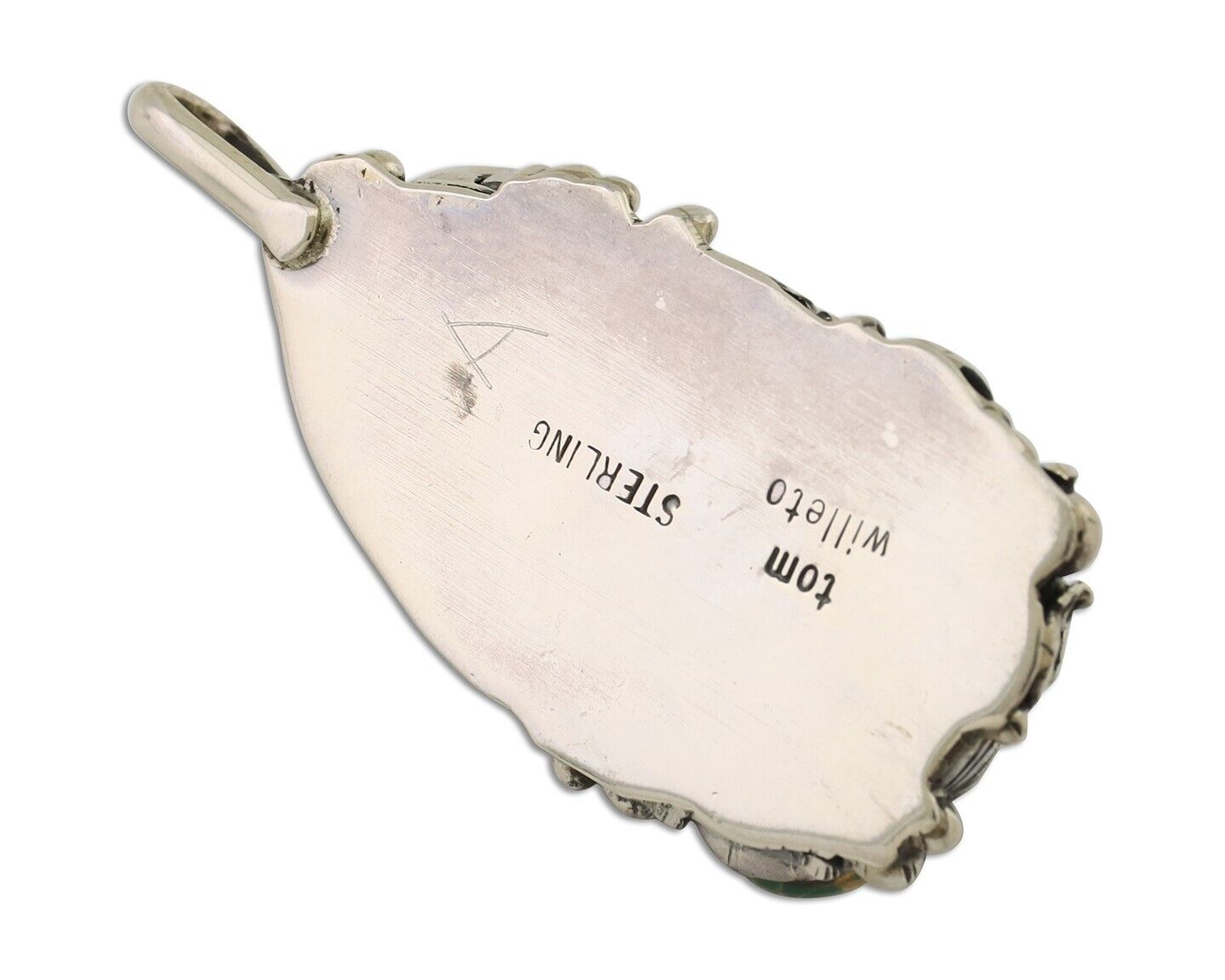 Navajo Pendant 925 Silver Natural Gem Turquoise Signed Tom Willeto C.80's