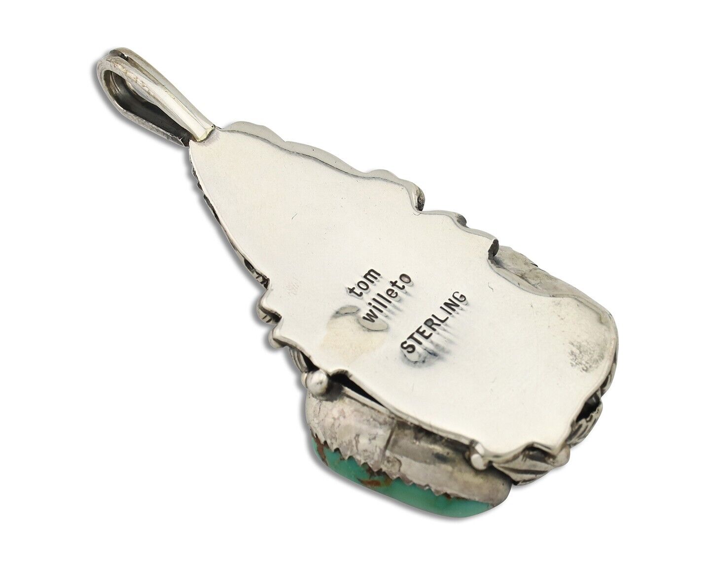 Navajo Pendant 925 Silver Natural Mined High Grade Turquoise Signed Tom Willeto