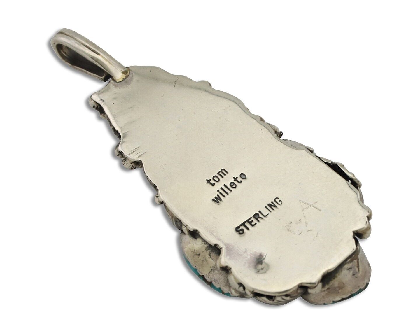 Navajo Pendant 925 Silver Natural Mined High Grade Turquoise Signed Tom Willeto