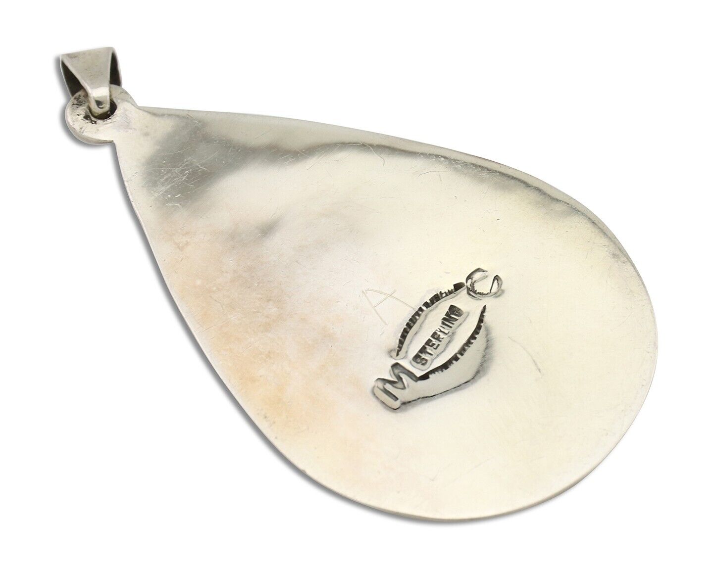 Navajo Pendant 925 Silver Natural Mined Turquoise Artist Signed MC C.80's