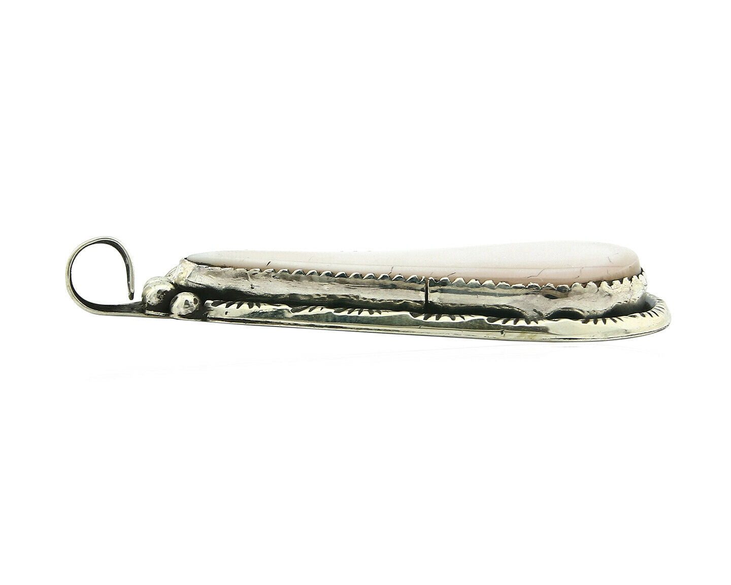Navajo Pendant .925 Silver Real Natural Pink Mussel Signed Yazzie C.80's