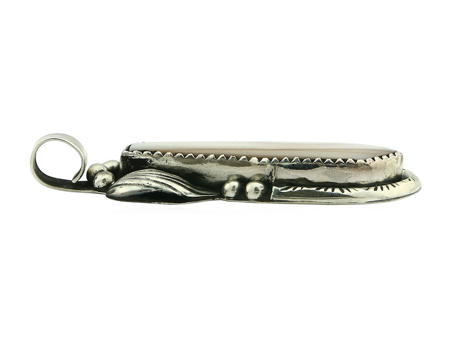 Navajo Pendant .925 Silver Real Natural Pink Mussel Signed Yazzie C.80's