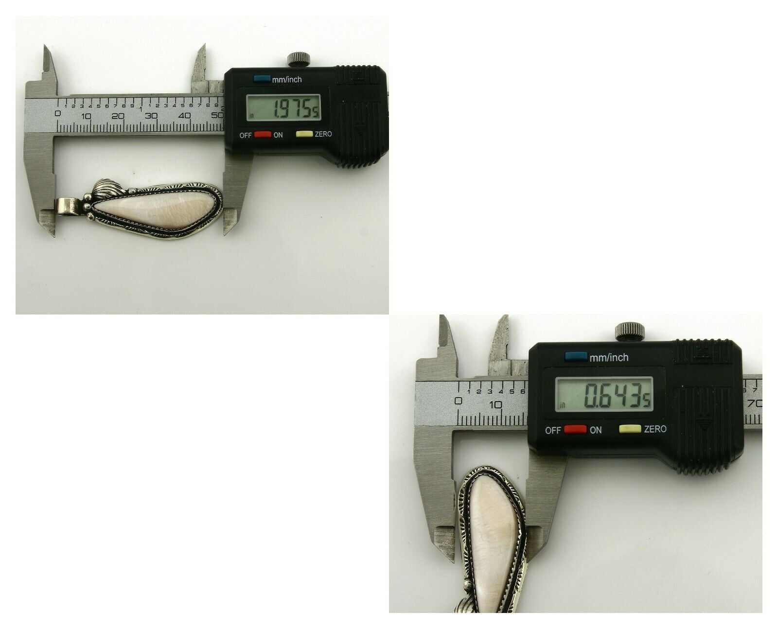 Navajo Pendant .925 Silver Real Natural Pink Mussel Signed Yazzie C.80's