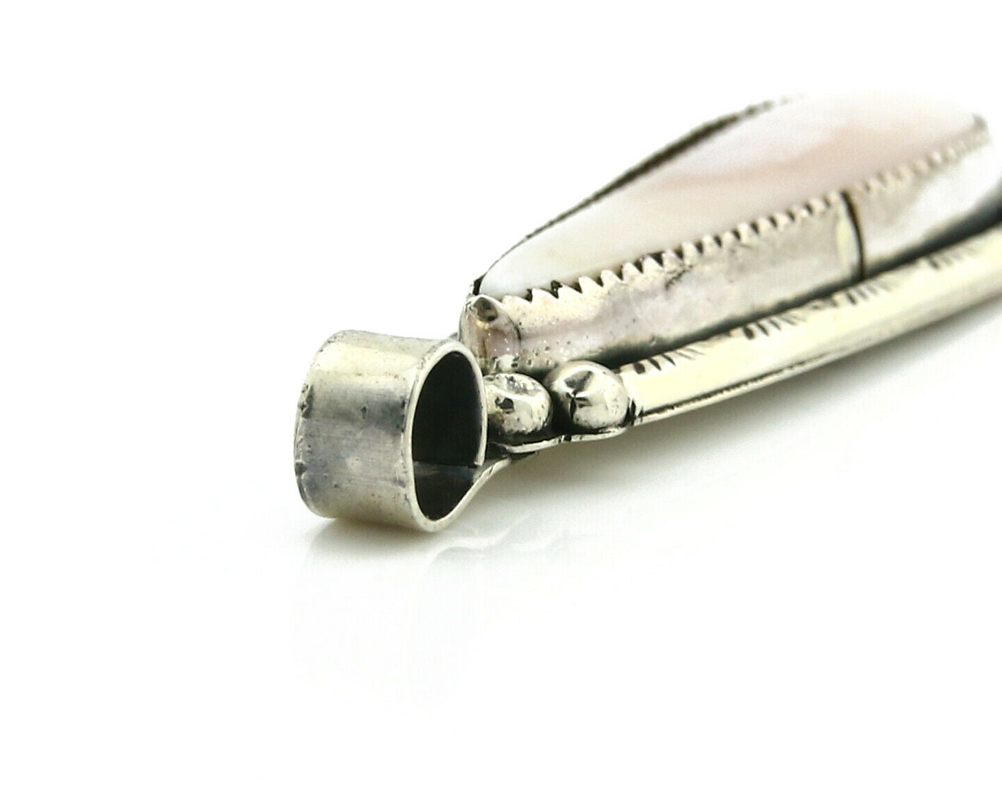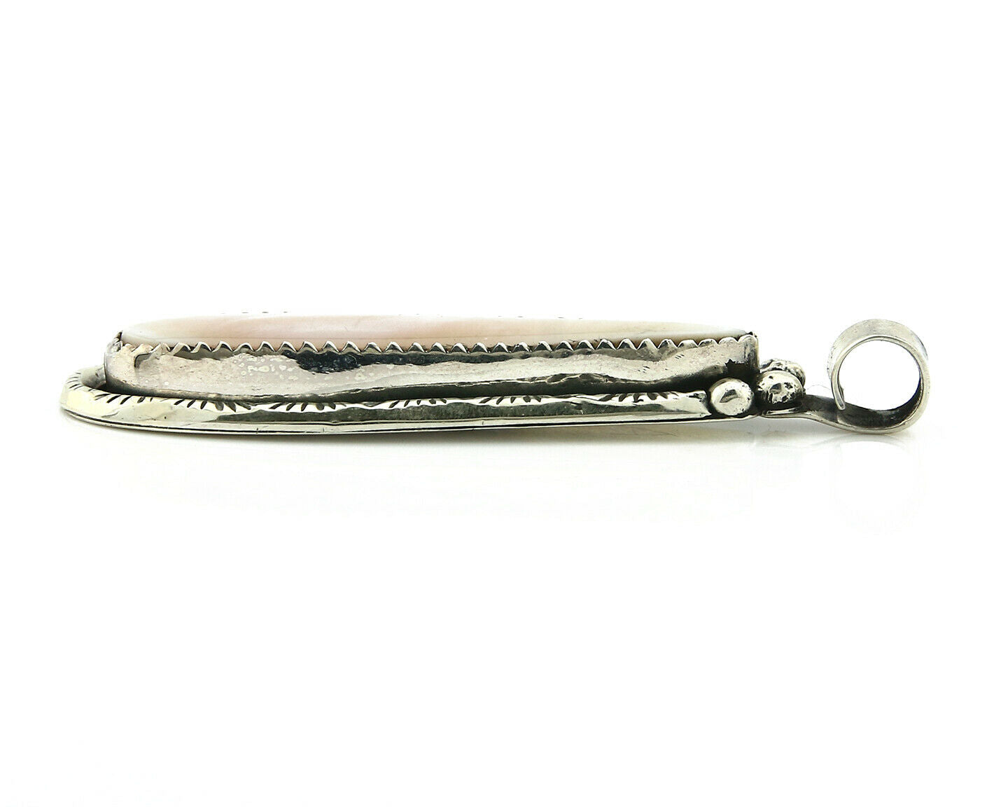 Navajo Pendant .925 Silver Real Natural Pink Mussel Signed Yazzie C.80's