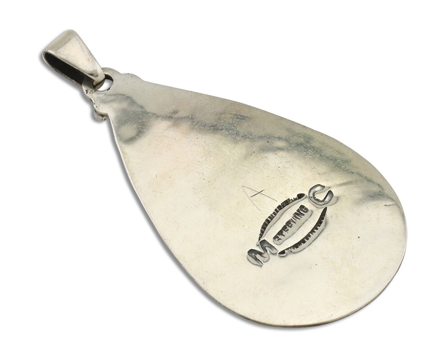 Navajo Pendant 925 Silver Spiderweb Turquoise Artist Signed C Montoya C.80's