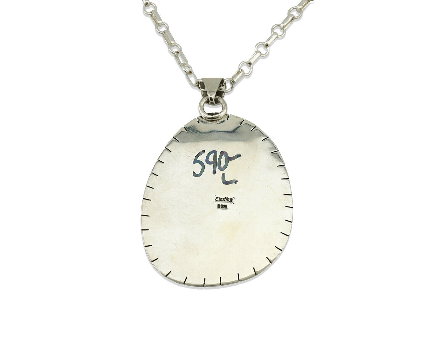 Navajo Pendant .925 Silver Spiderweb Turquoise Native American C.80's
