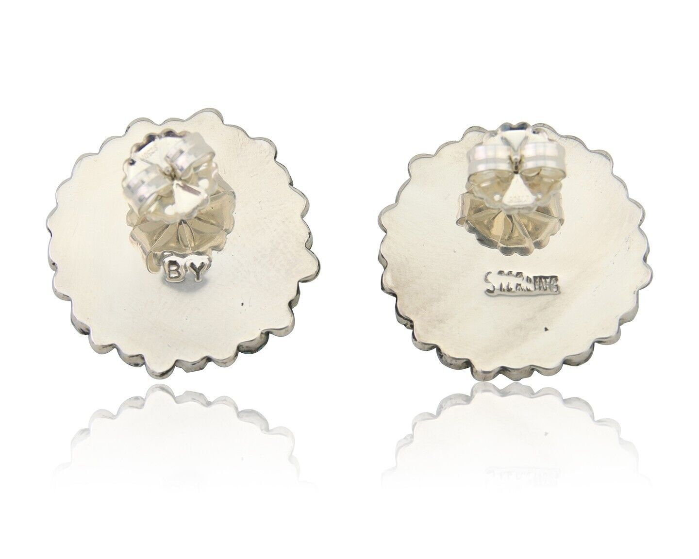 Navajo Petit Point Earrings 925 Silver Turquoise Signed Benson Yazzie C.80's