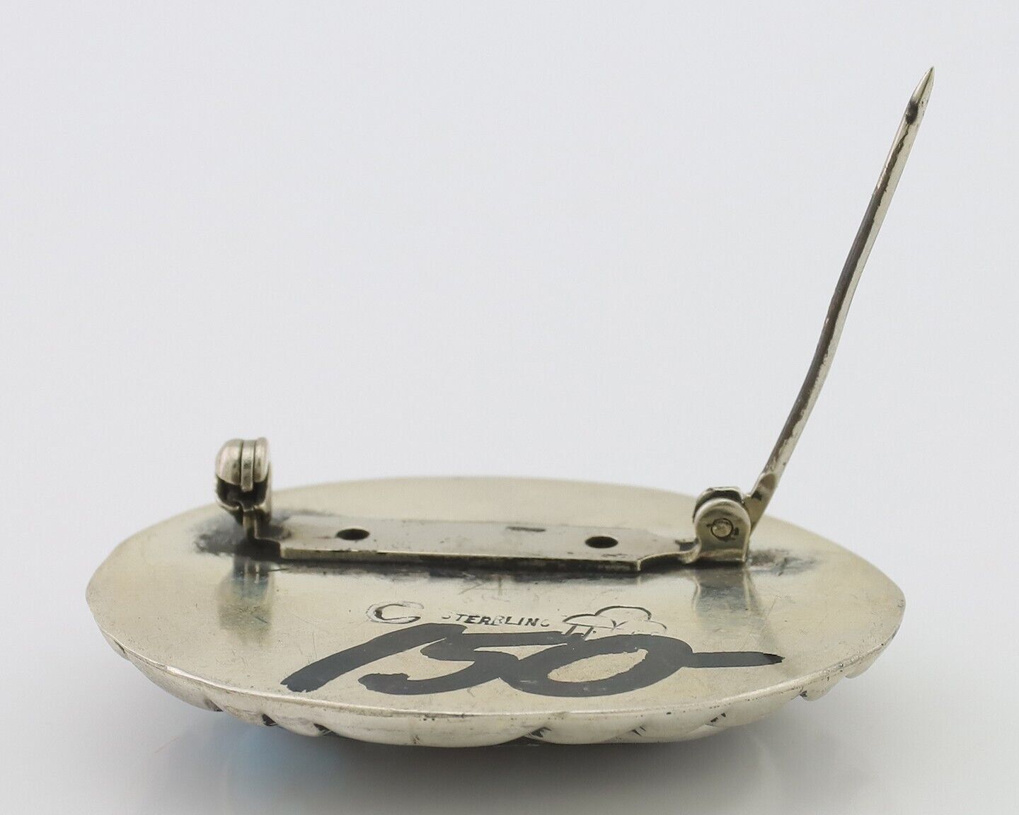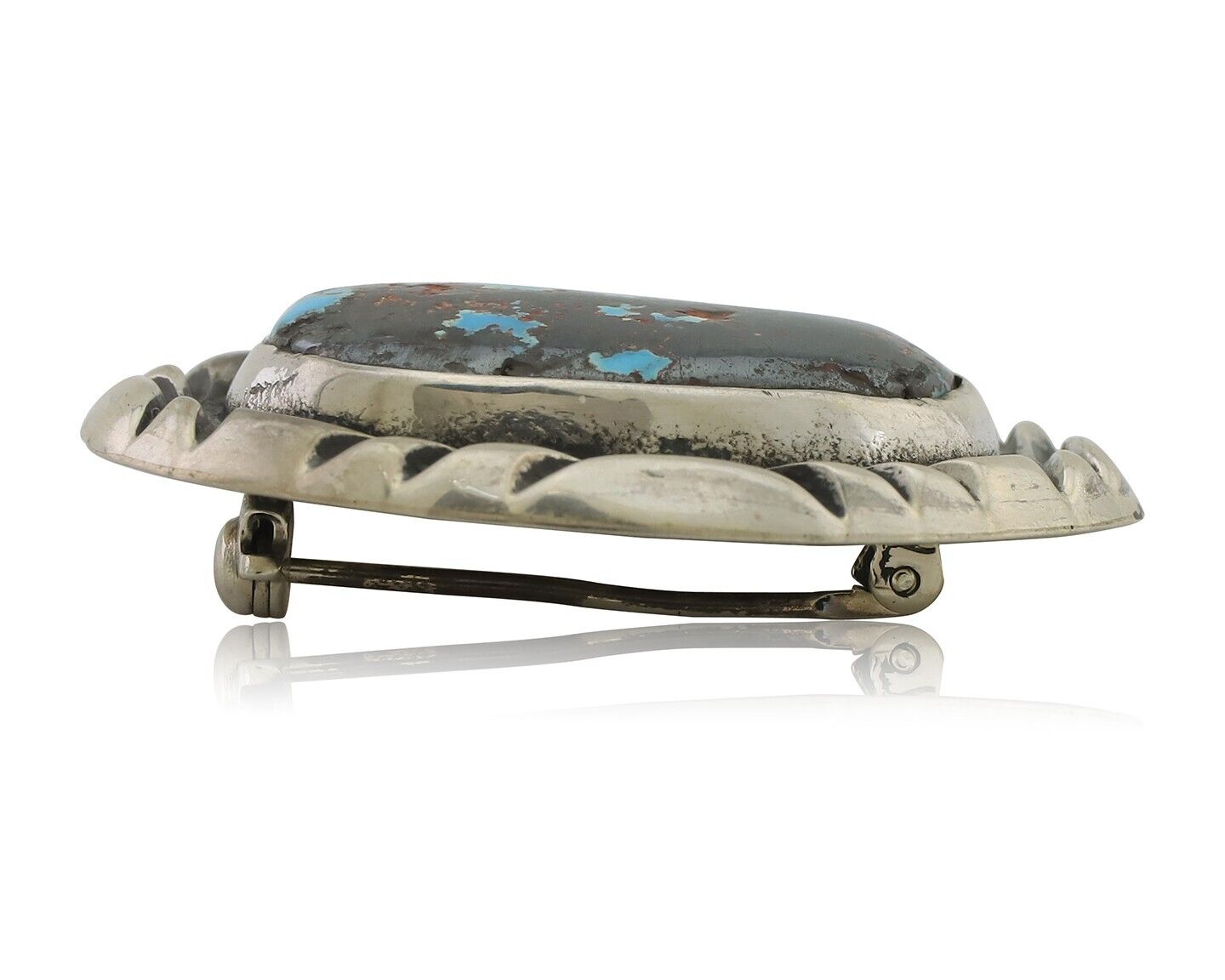 Navajo Pin 925 Silver Natural Blue Turquoise Signed C Raincloud C.80's