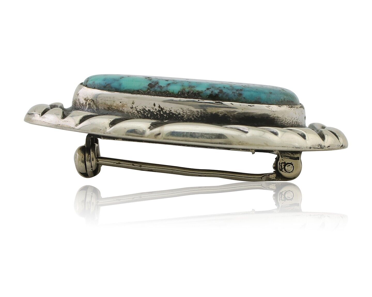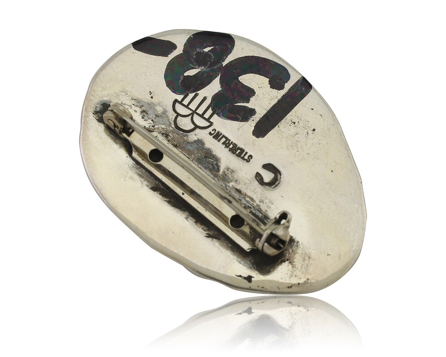 Navajo Pin 925 Silver Natural Spiderweb Turquoise Signed C Raincloud C.80's