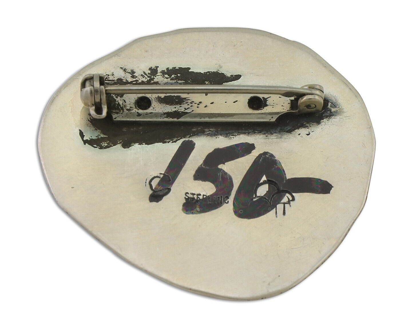 Navajo Pin 925 Silver Natural Spiderweb Turquoise Signed C Raincloud C.80's