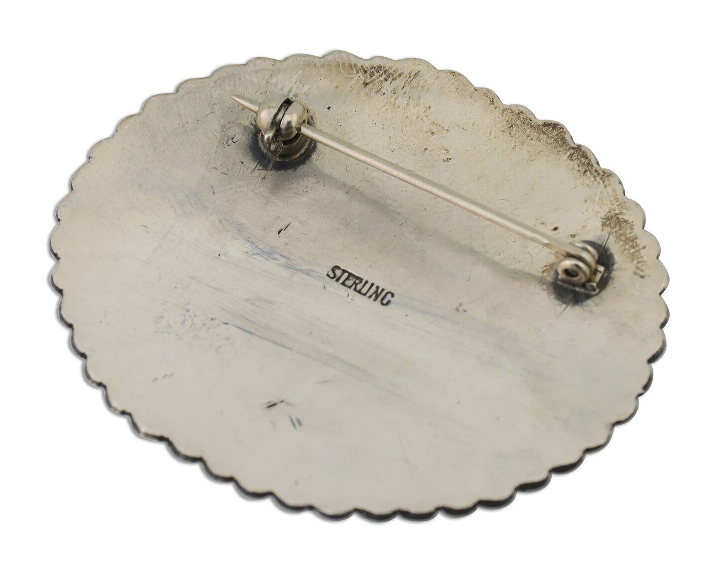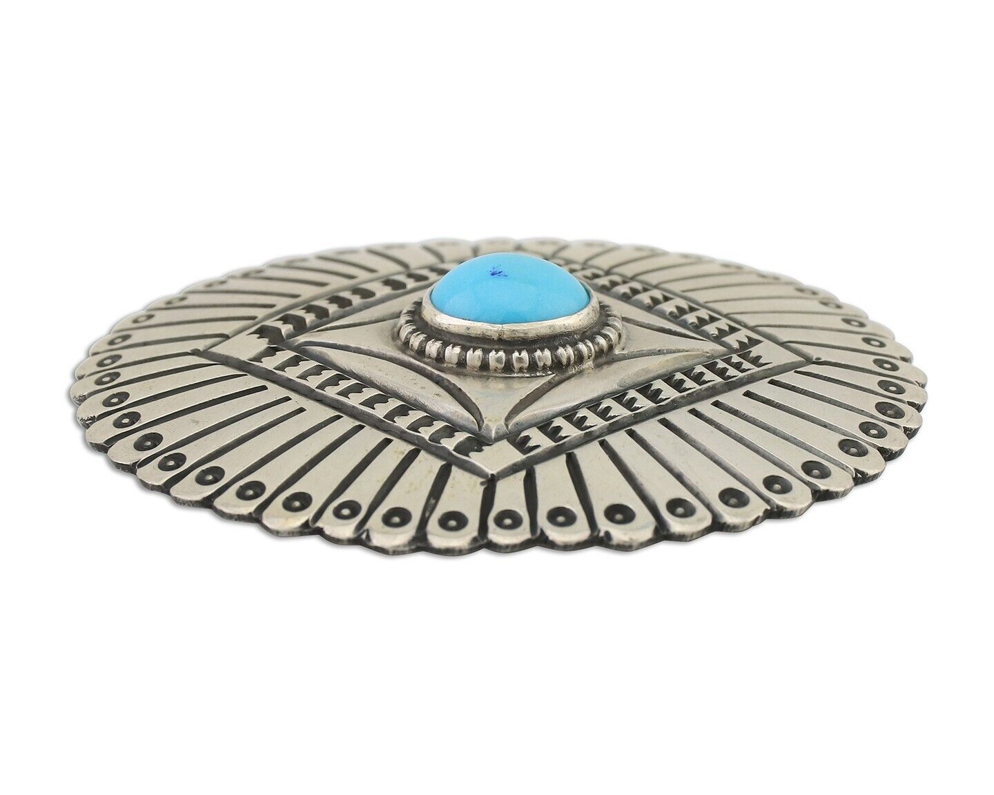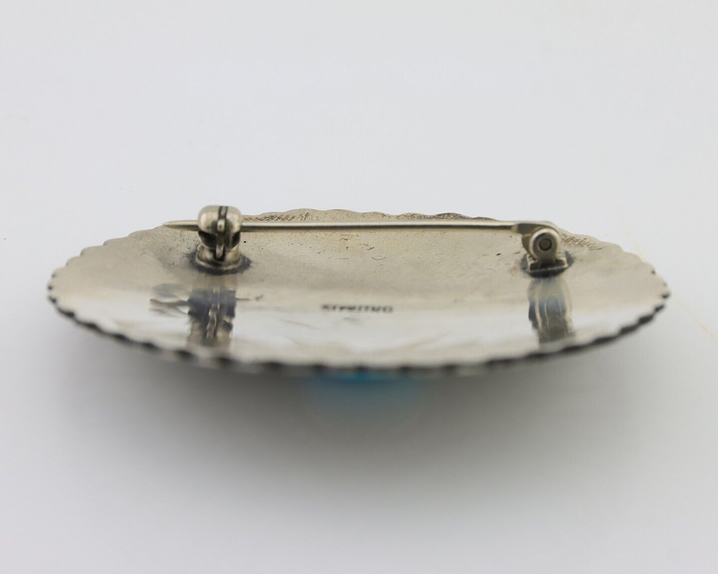 Navajo Pin 925 Silver Natural Turquoise Hand Stamped Native Artist C.80s