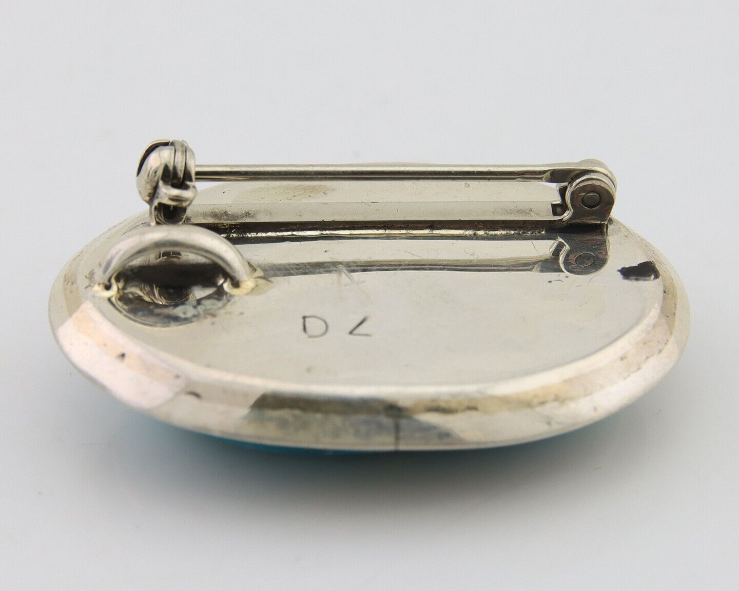 Navajo Pin Pendant 925 Silver Globe Turquoise Artist Signed Doug Zachary C.80's