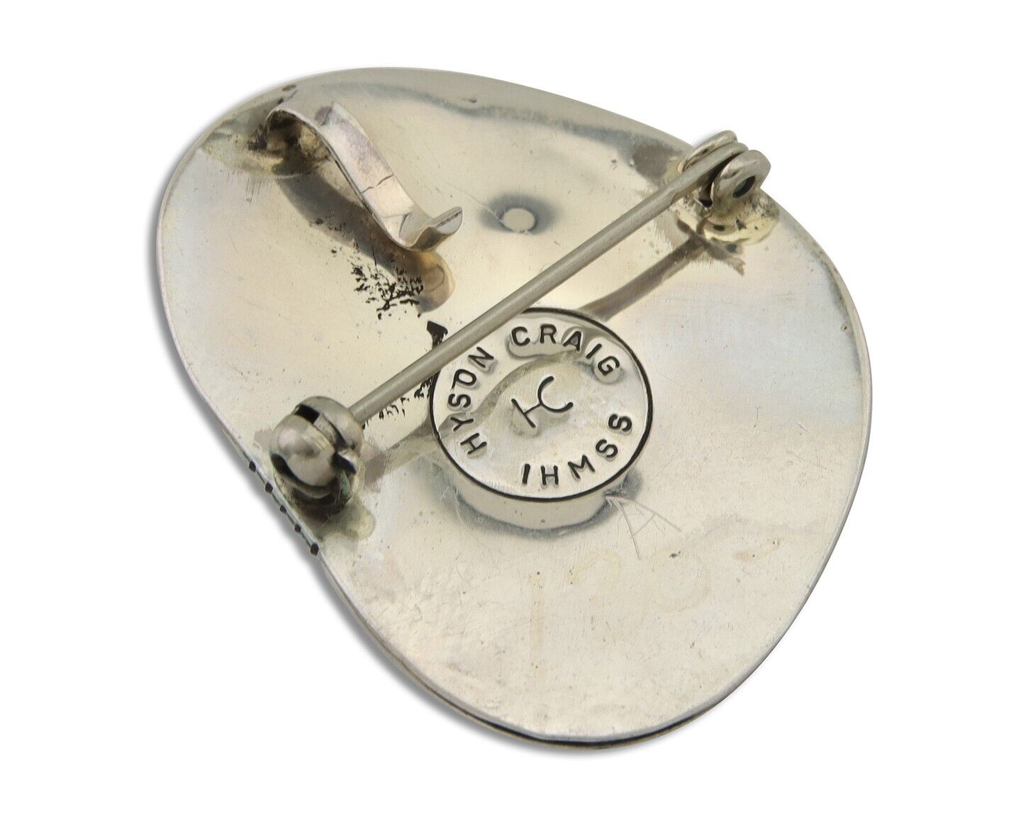 Navajo Pin Pendant 925 Silver Sea Foam Turquoise Artist Signed Hyson Craig C.80s