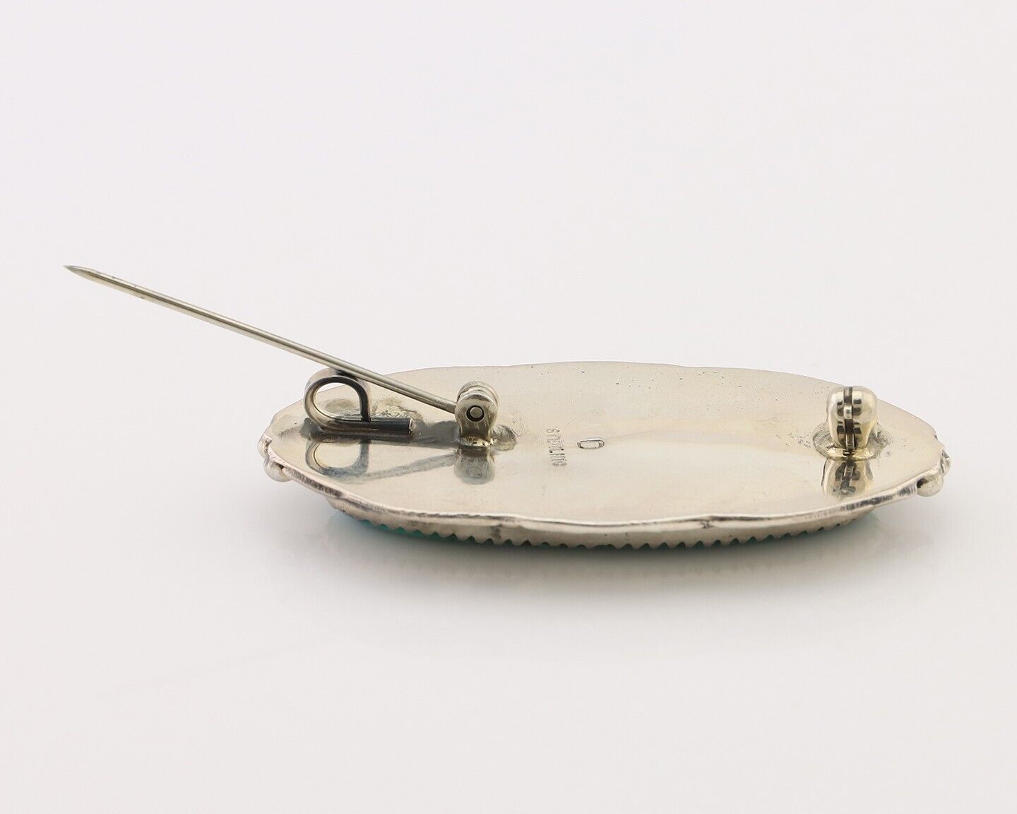 Navajo Pin Pendant 925 Silver Turquoise Hand Stamped Artist Signed D C.80's