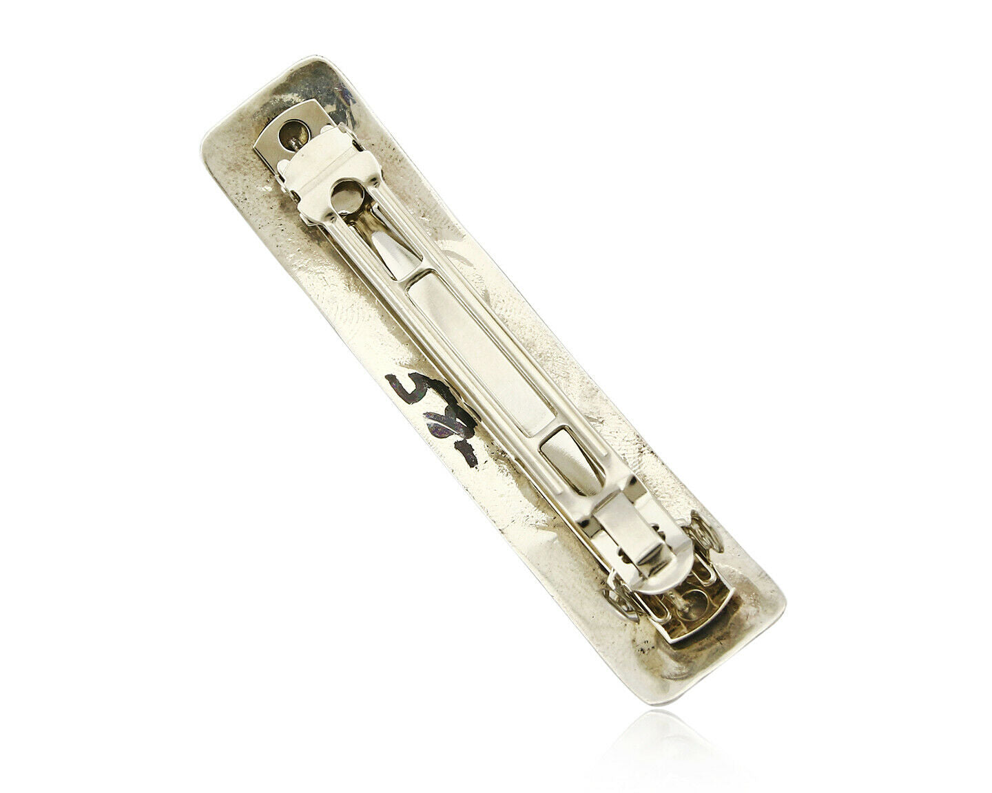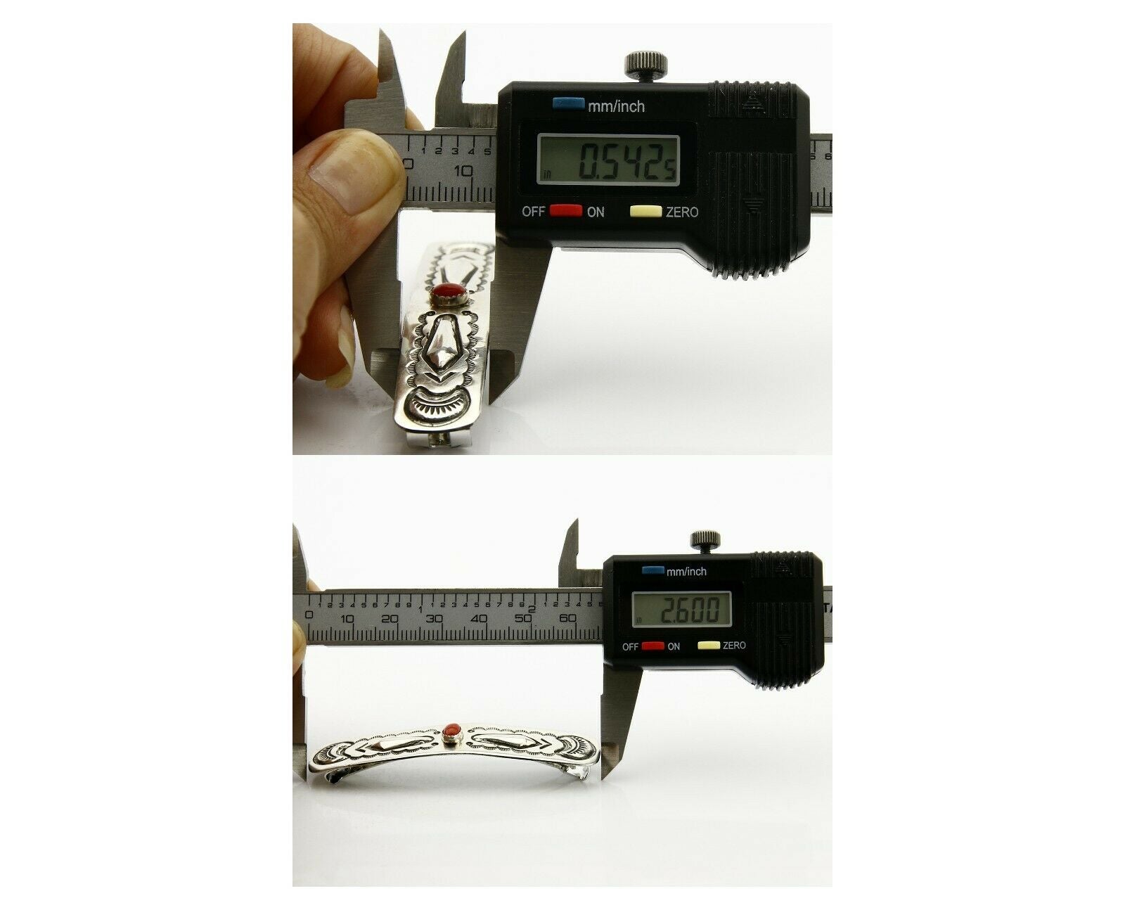 Navajo Real Red Coral 925 SOLID SILVER Hand Stamped 12mm Wide Barrette Hair Clip