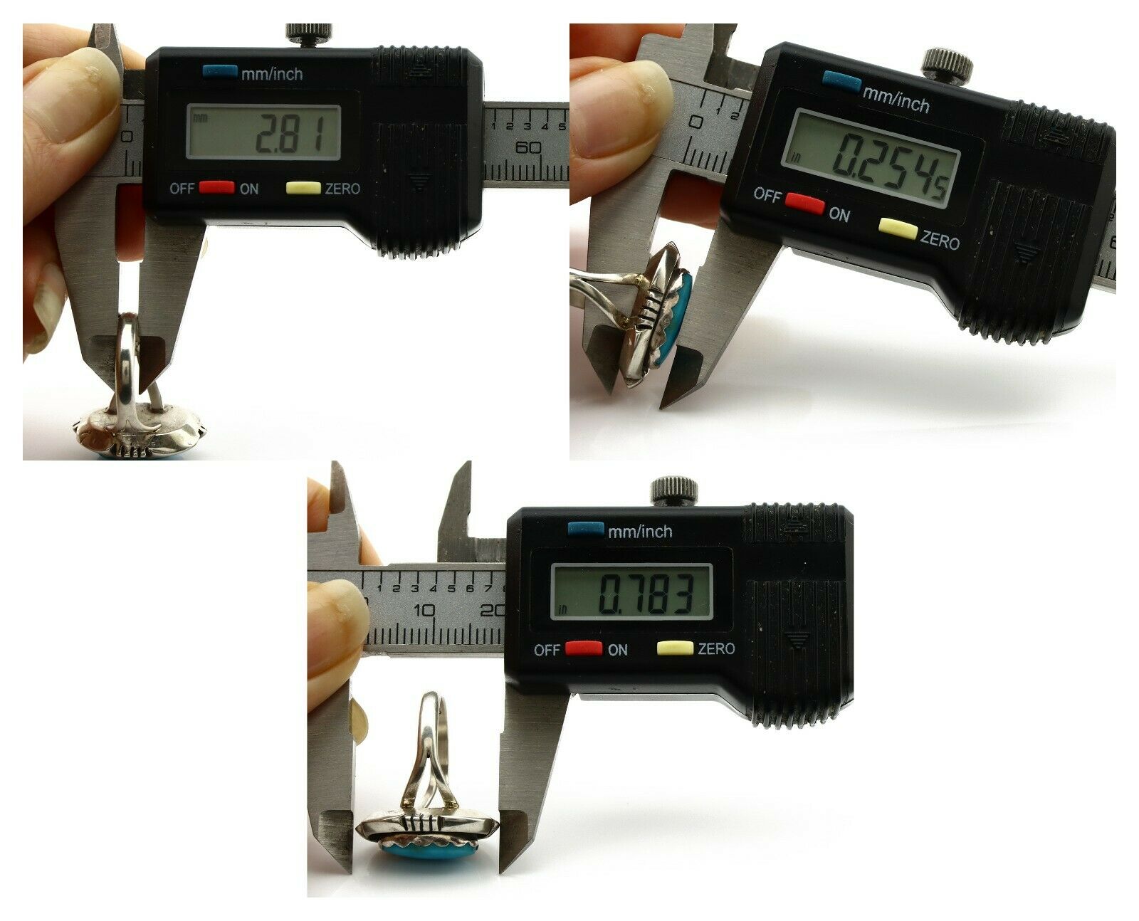 Navajo Ring .925 Silver Blue Gem Turquoise Handmade Native American Artist C80s