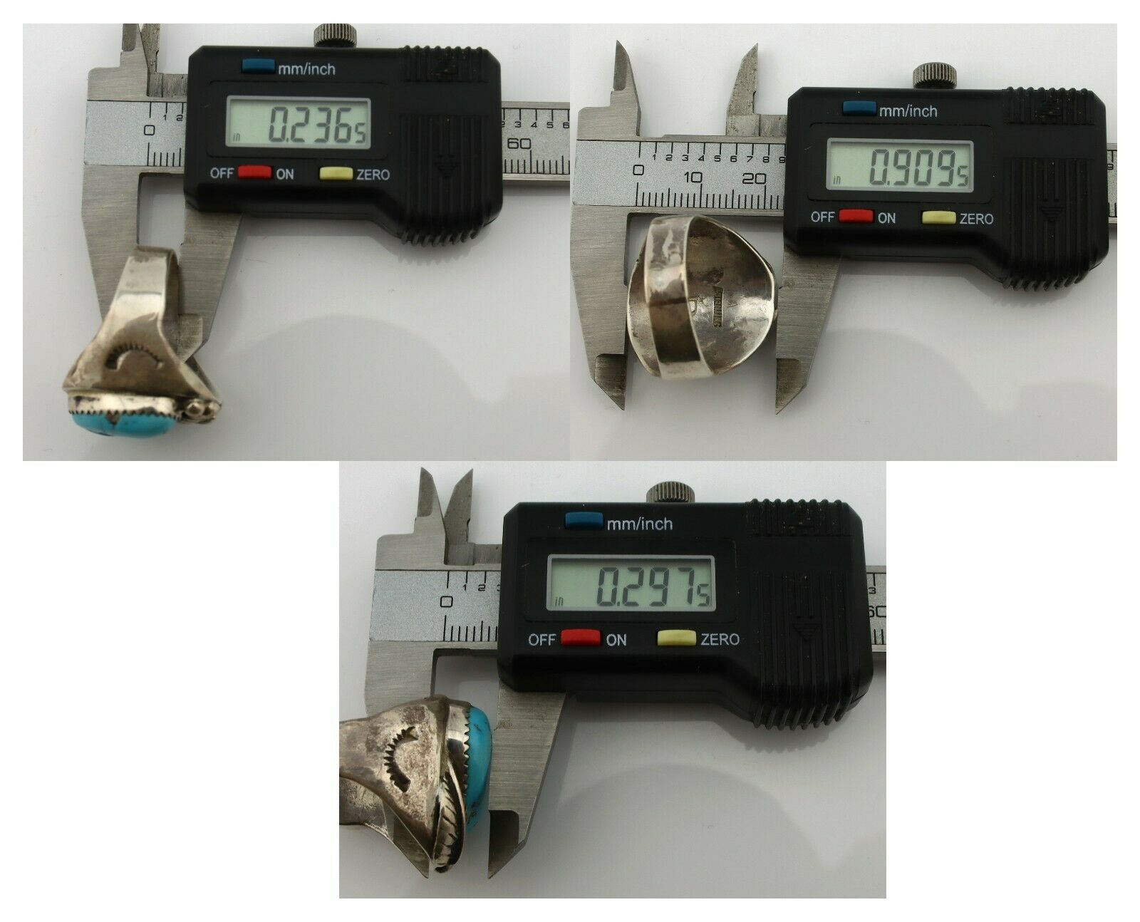 Navajo Ring .925 Silver Blue Turquoise Artist Signed R C.80's