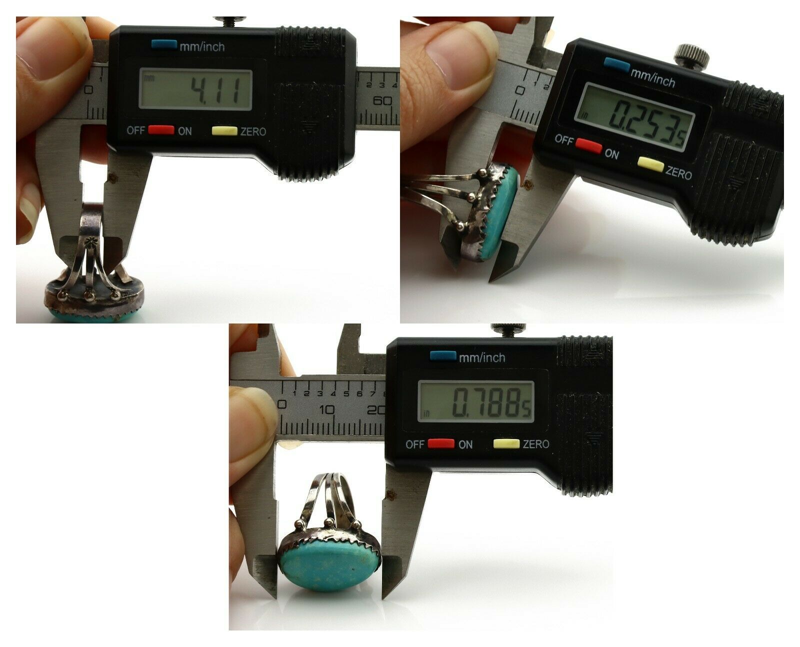 Navajo Ring .925 Silver Blue Turquoise Native American Artist C.1980's
