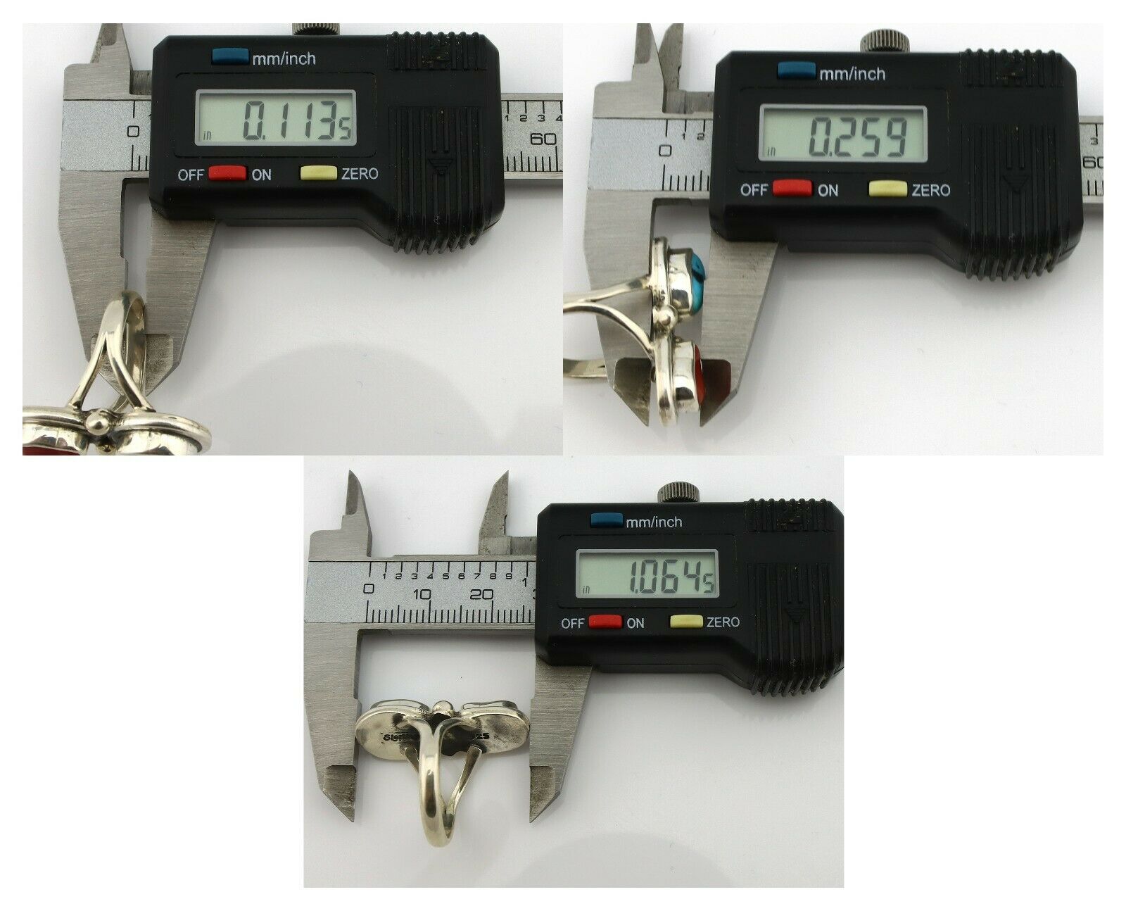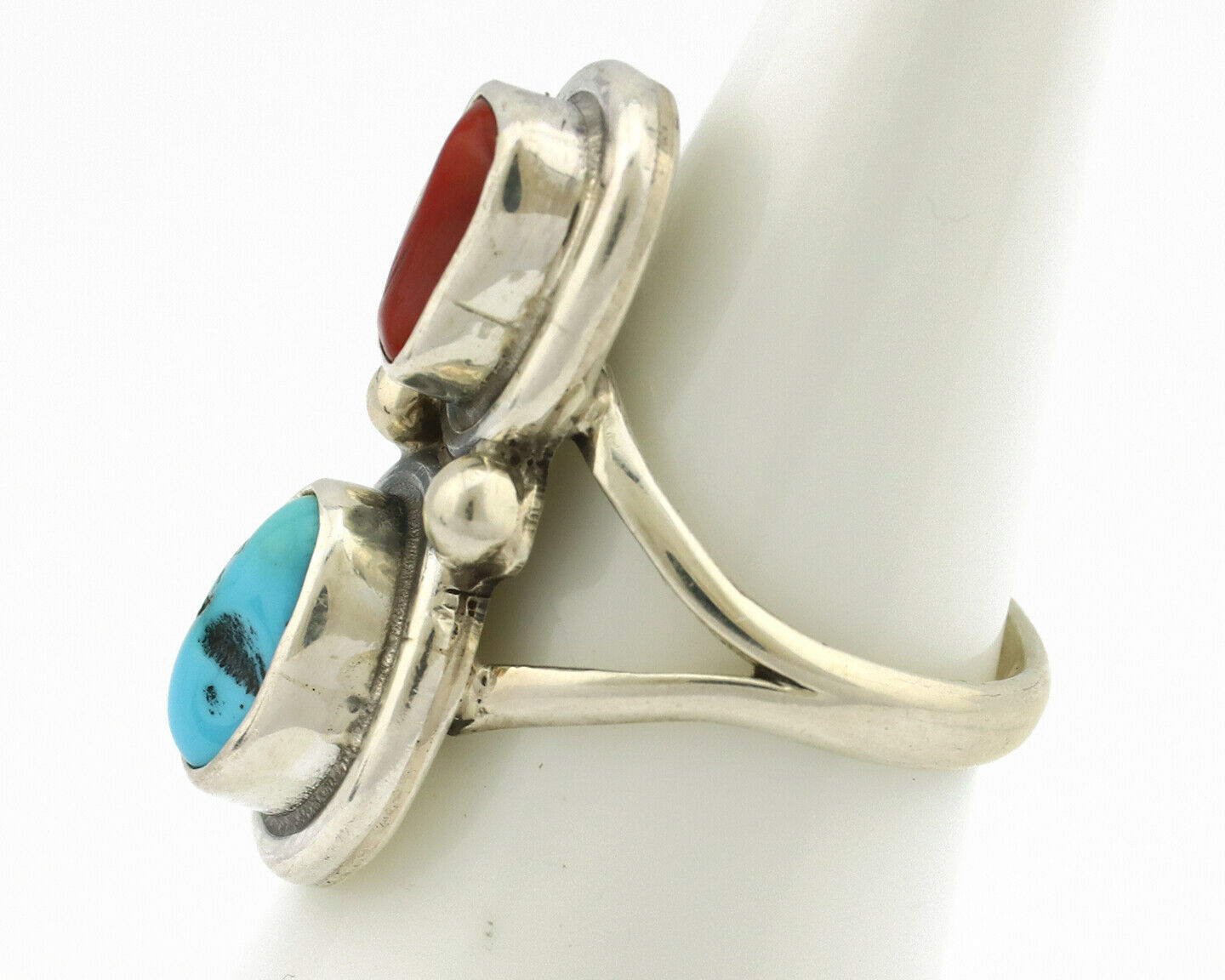 Navajo Ring .925 Silver Blue Turquoise & Red Coral Native American Artist C.80's