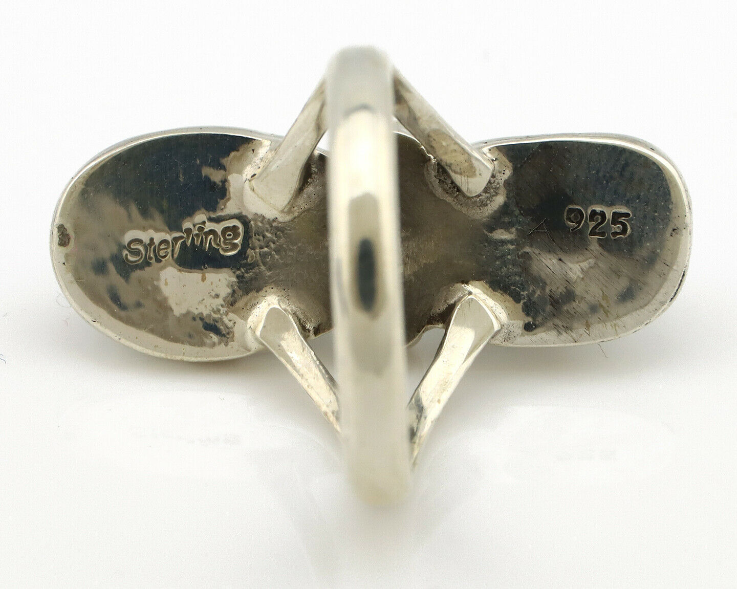 Navajo Ring .925 Silver Blue Turquoise & Red Coral Native American Artist C.80's