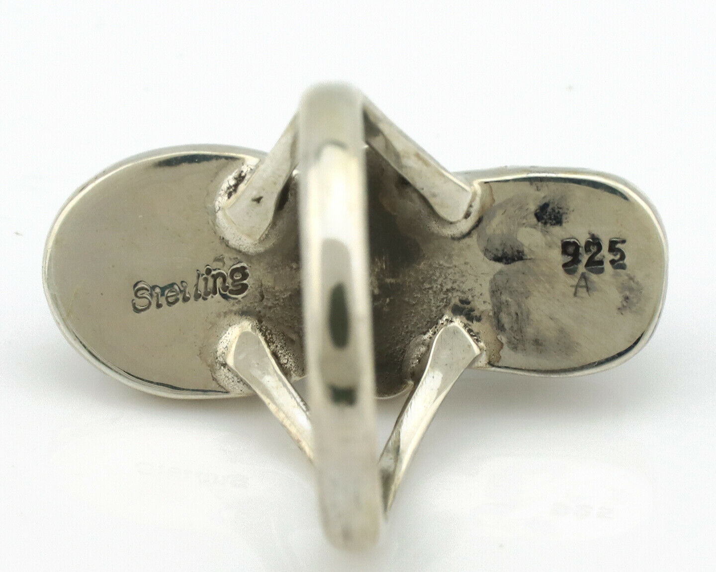 Navajo Ring .925 Silver Blue Turquoise & Red Coral Native American Artist C.80's