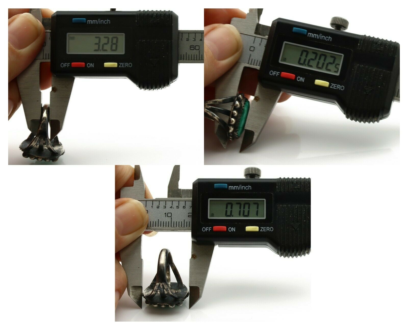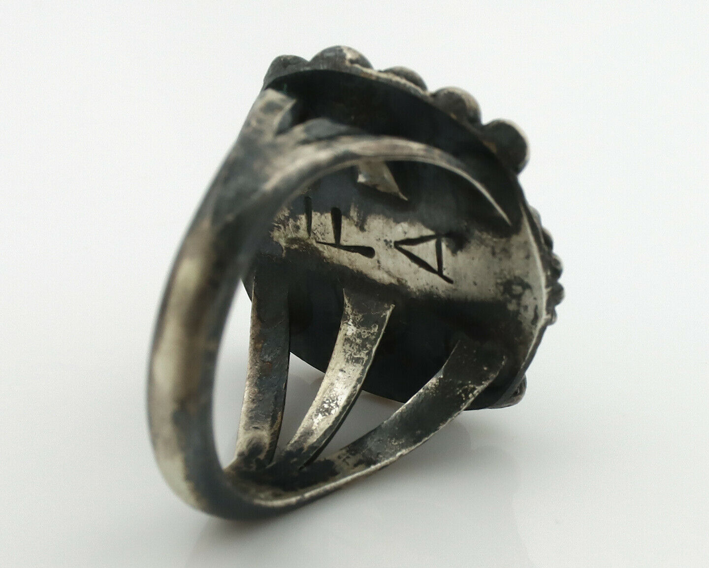 Navajo Ring .925 Silver Green Turquoise Signed Artist FA C.1980's