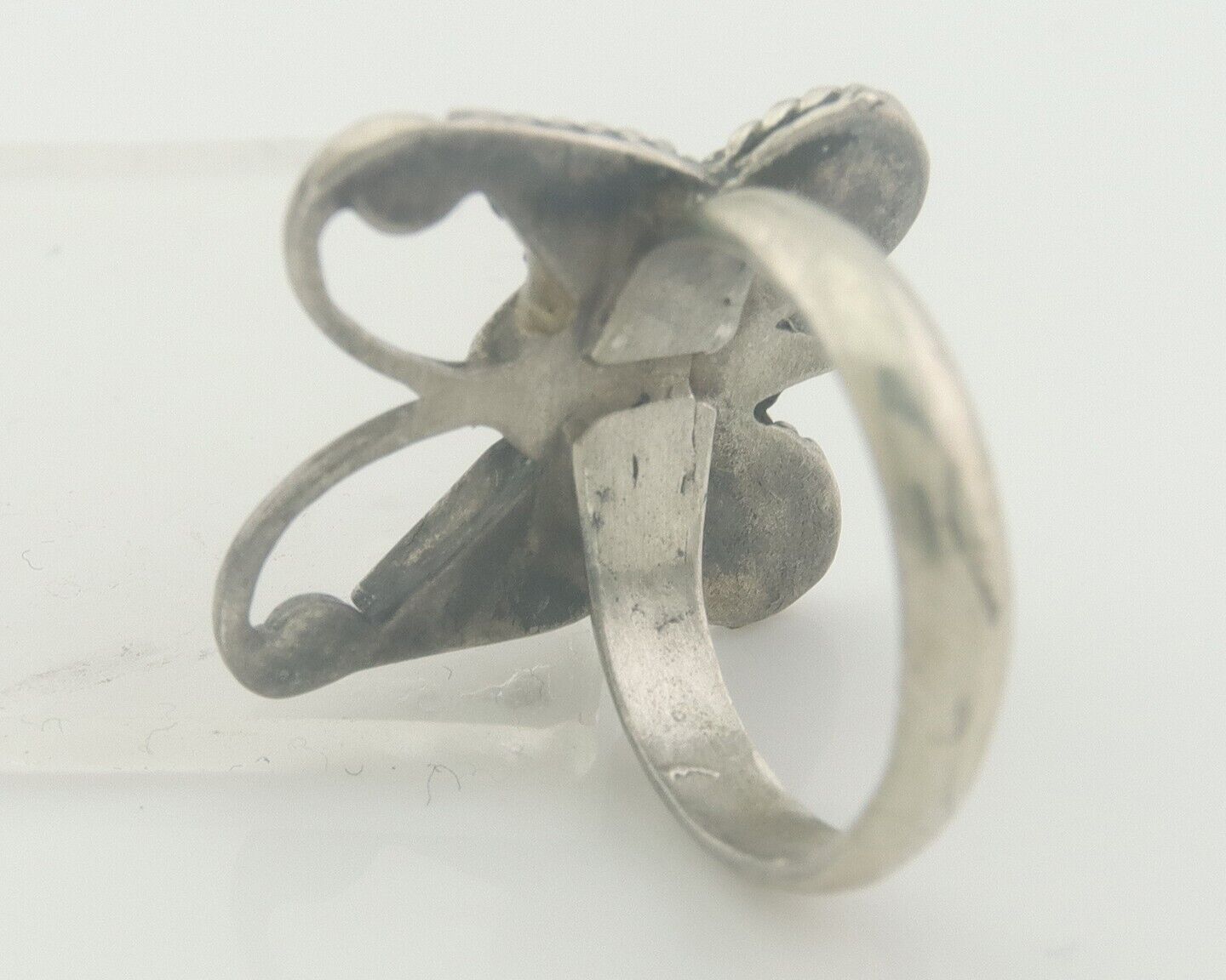 Navajo Ring 925 Silver Inlaid Butterfly Turquoise & Coral C.80's Size 4.5