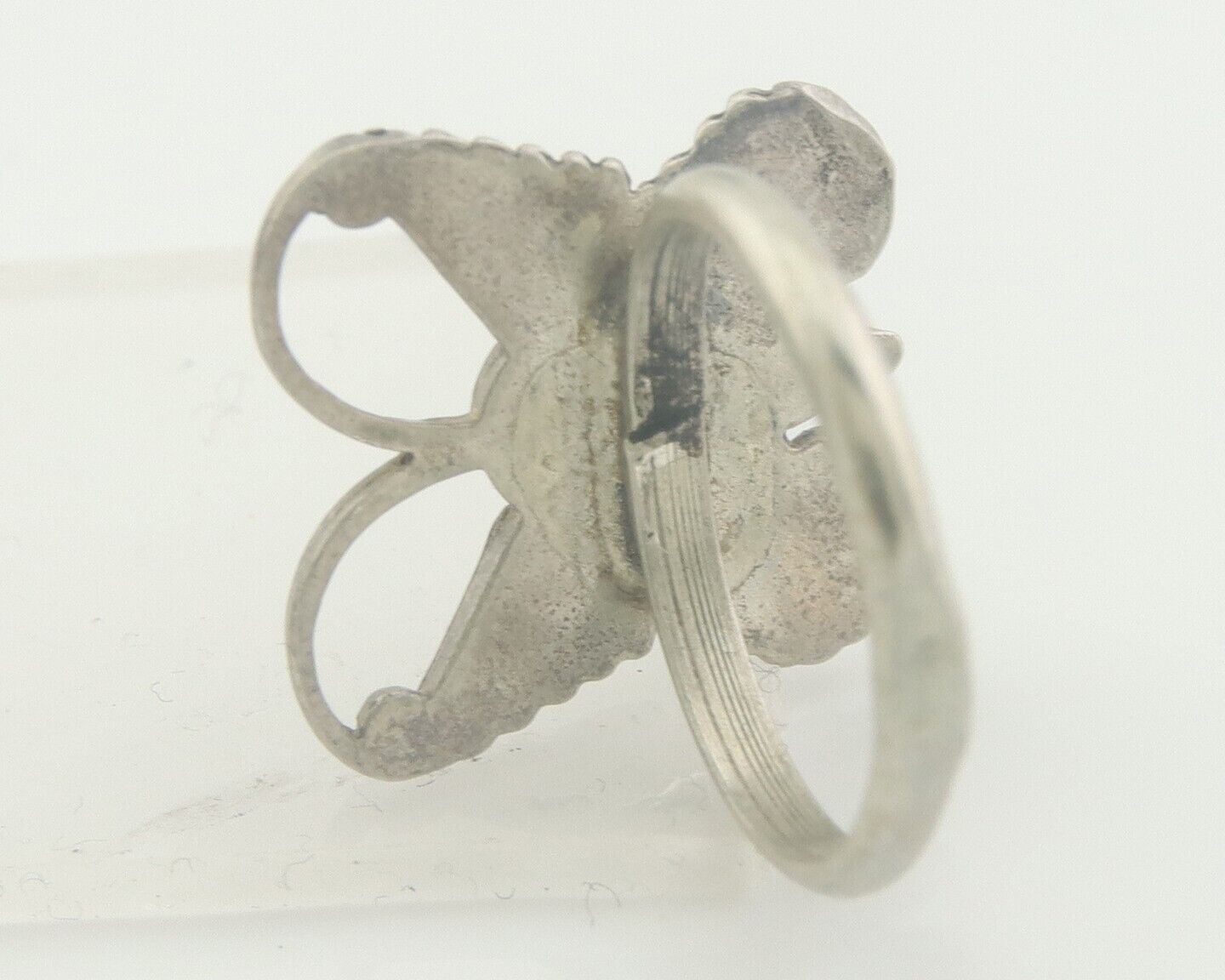 Navajo Ring 925 Silver Inlaid Butterfly Turquoise & Coral C.80's Size 5.0