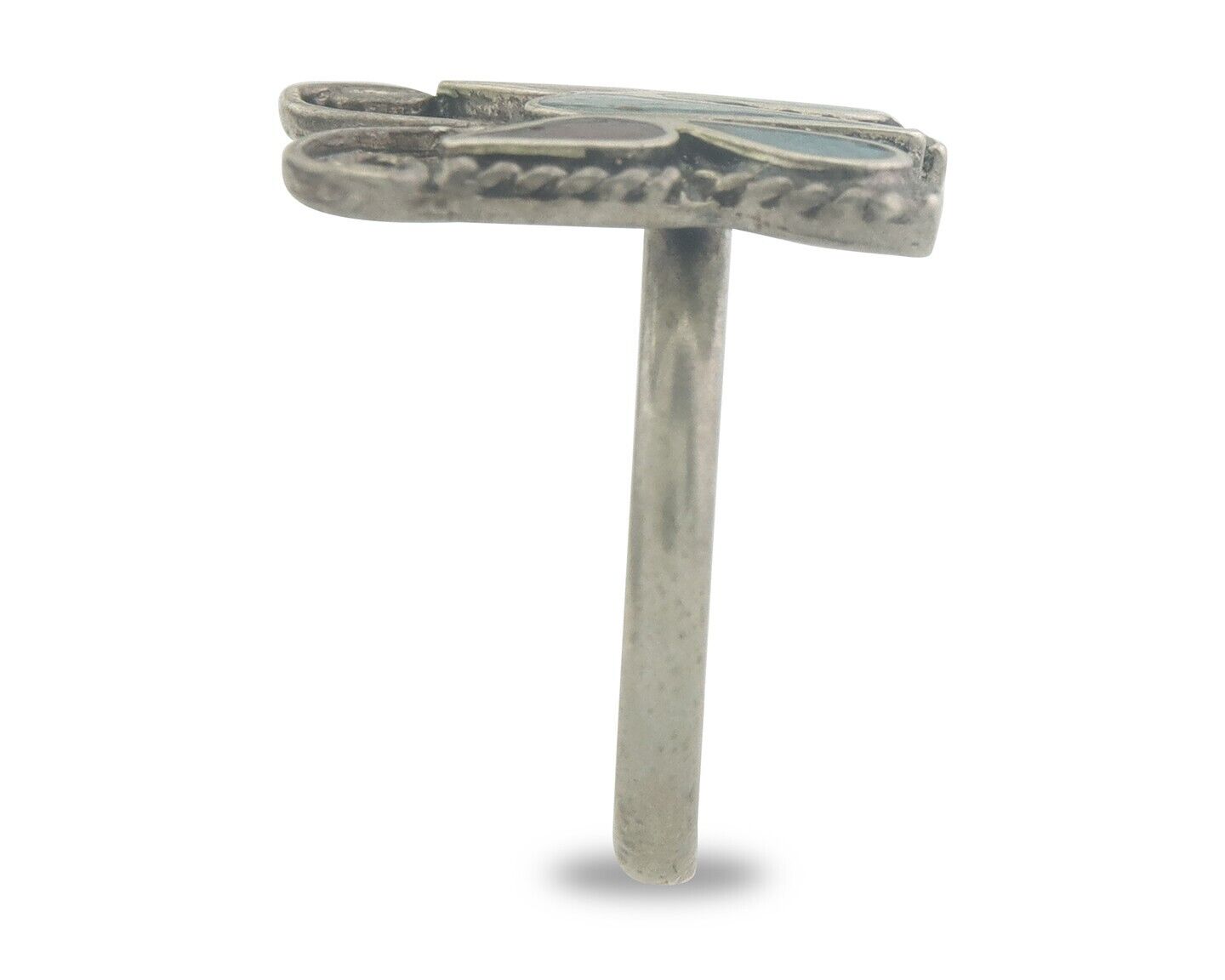 Navajo Ring 925 Silver Inlaid Butterfly Turquoise & Coral C.80's Size 5.5