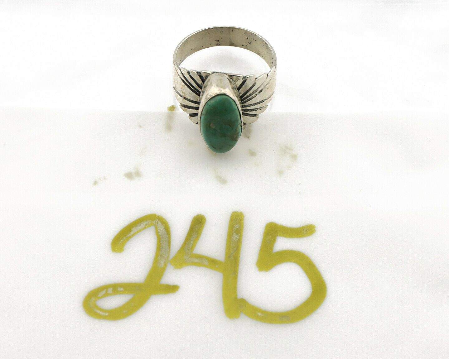 Navajo Ring .925 Silver Kingman Turquoise Artist Signed Apache C.80's