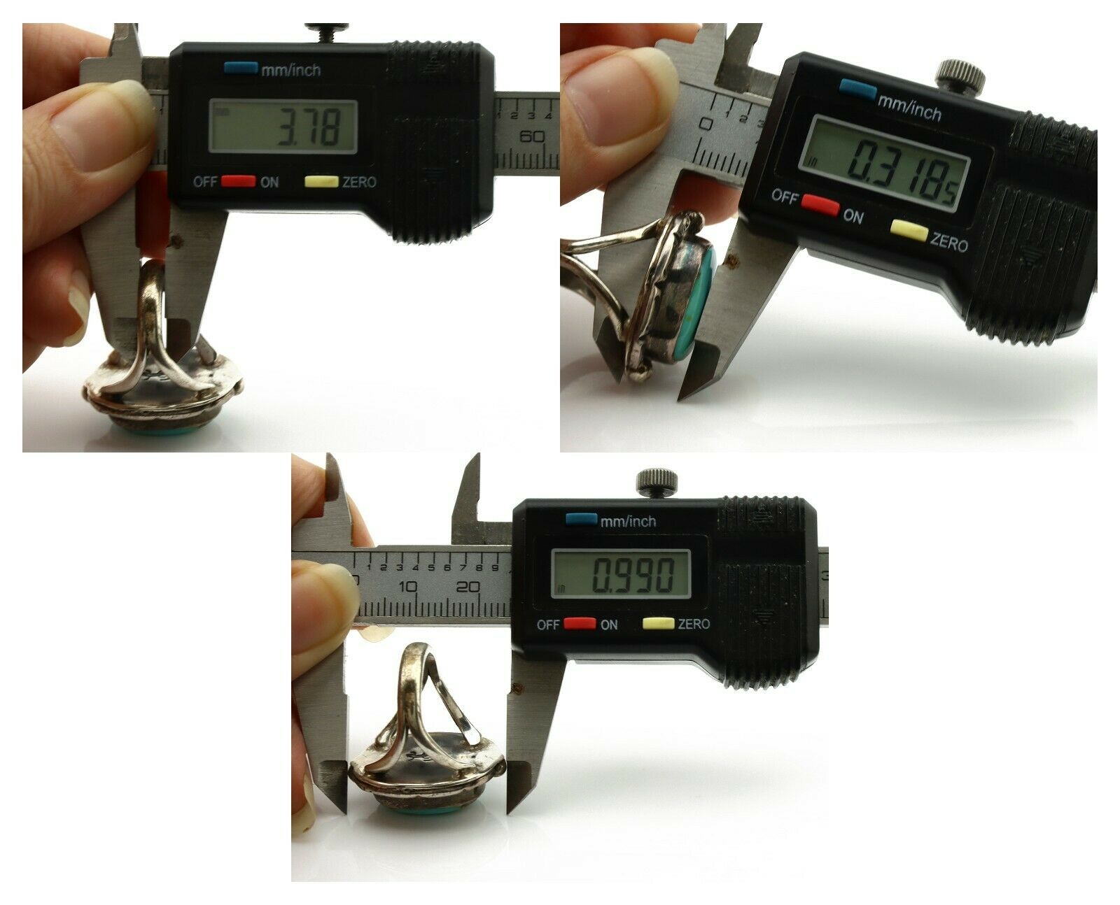 Navajo Ring .925 Silver Kingman Turquoise Artist Signed Gecko C.1980's
