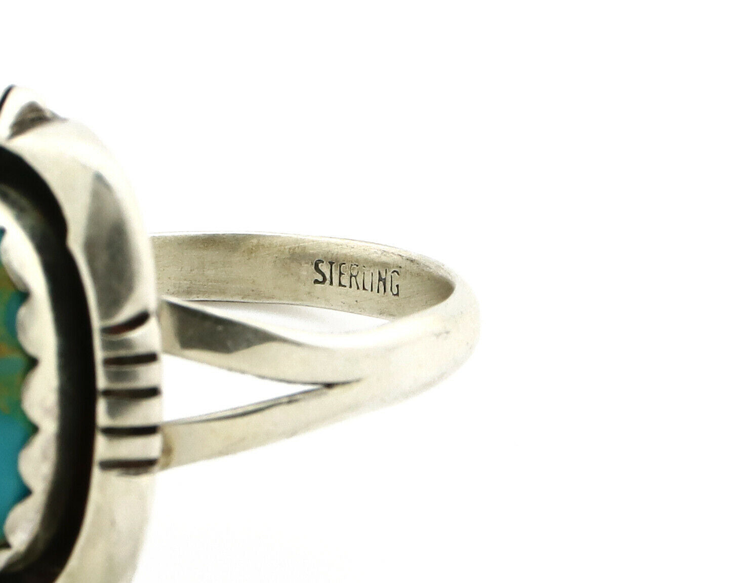Navajo Ring .925 Silver Kingman Turquoise Handmade Native American Artist C80s