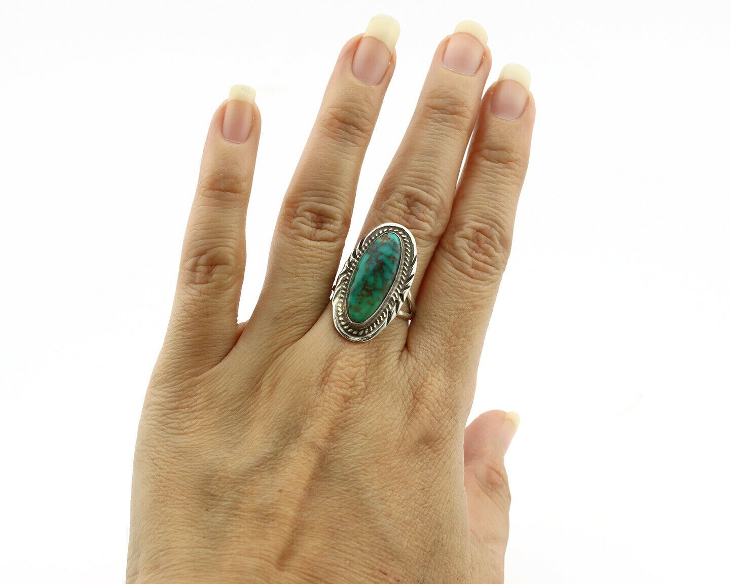 Navajo Ring .925 Silver Kingman Turquoise Native American Artist C.1980's