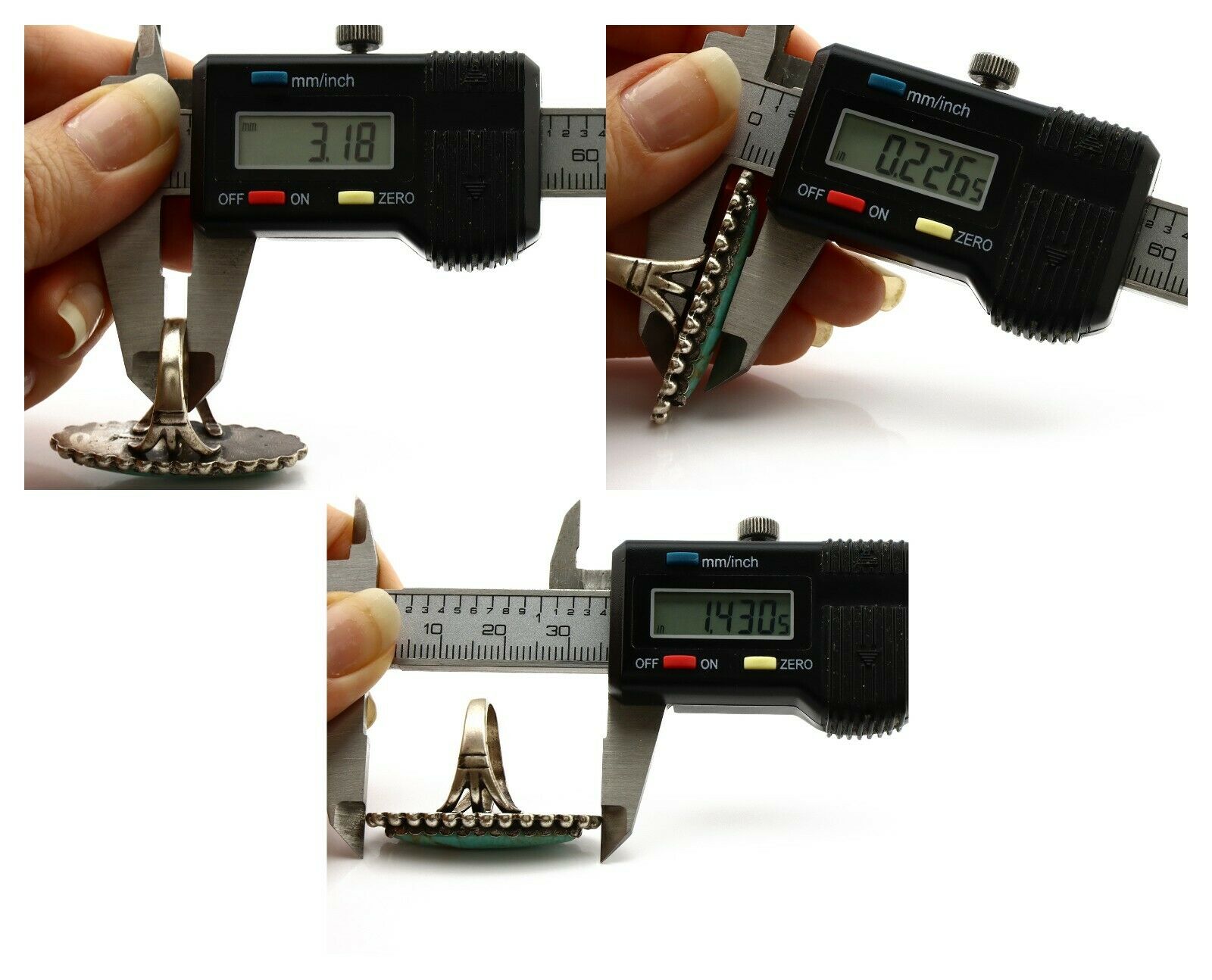 Navajo Ring .925 Silver Kingman Turquoise Signed Artist Sunbell C.80's
