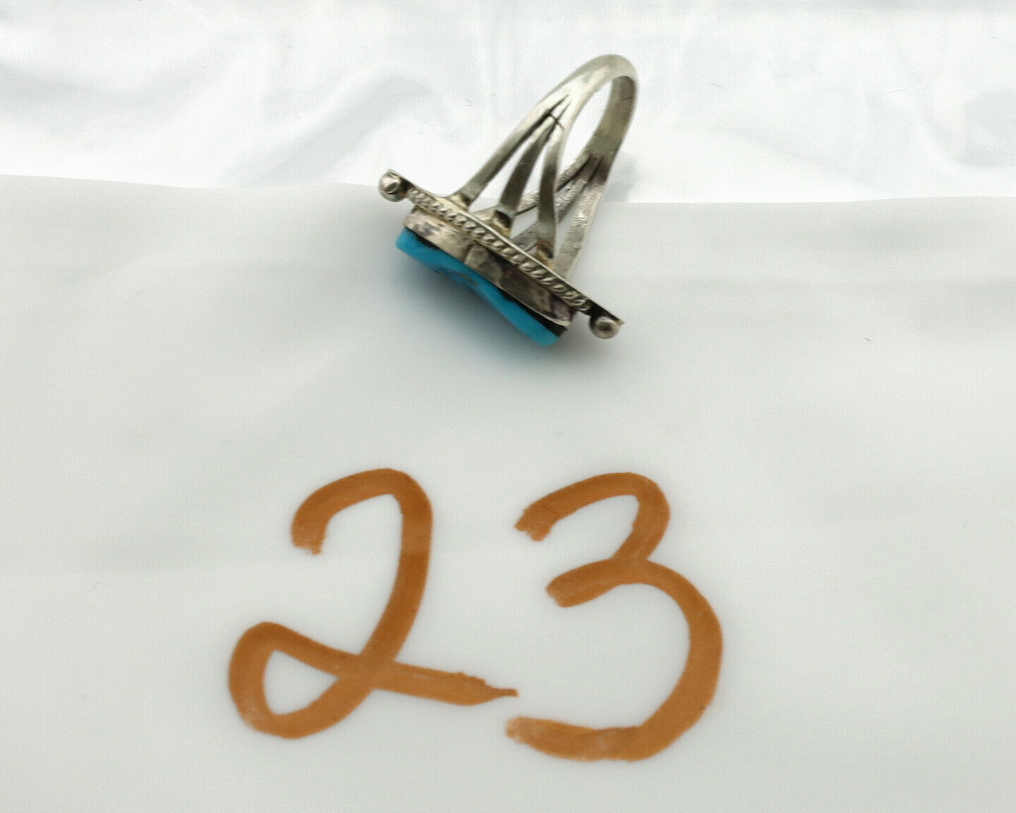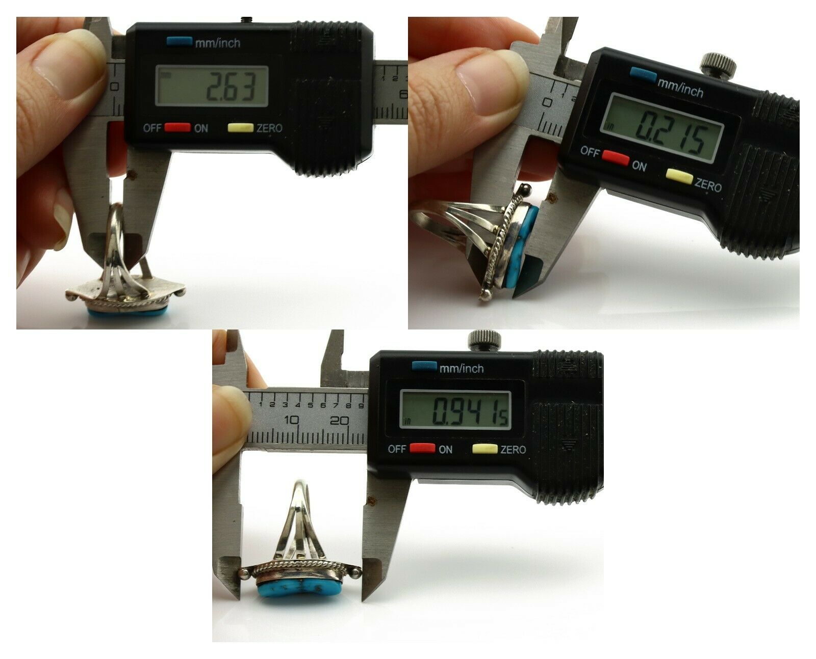 Navajo Ring .925 Silver Morenci Turquoise Artist Signed S King C.1980's