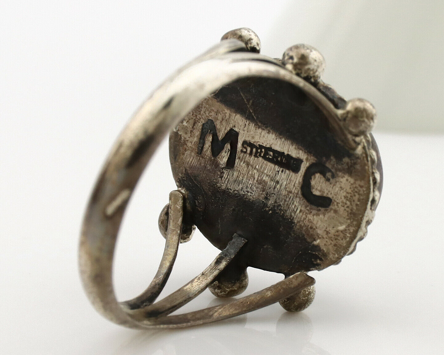 Navajo Ring .925 Silver Natural Green Turquoise Artist Signed R C.80's