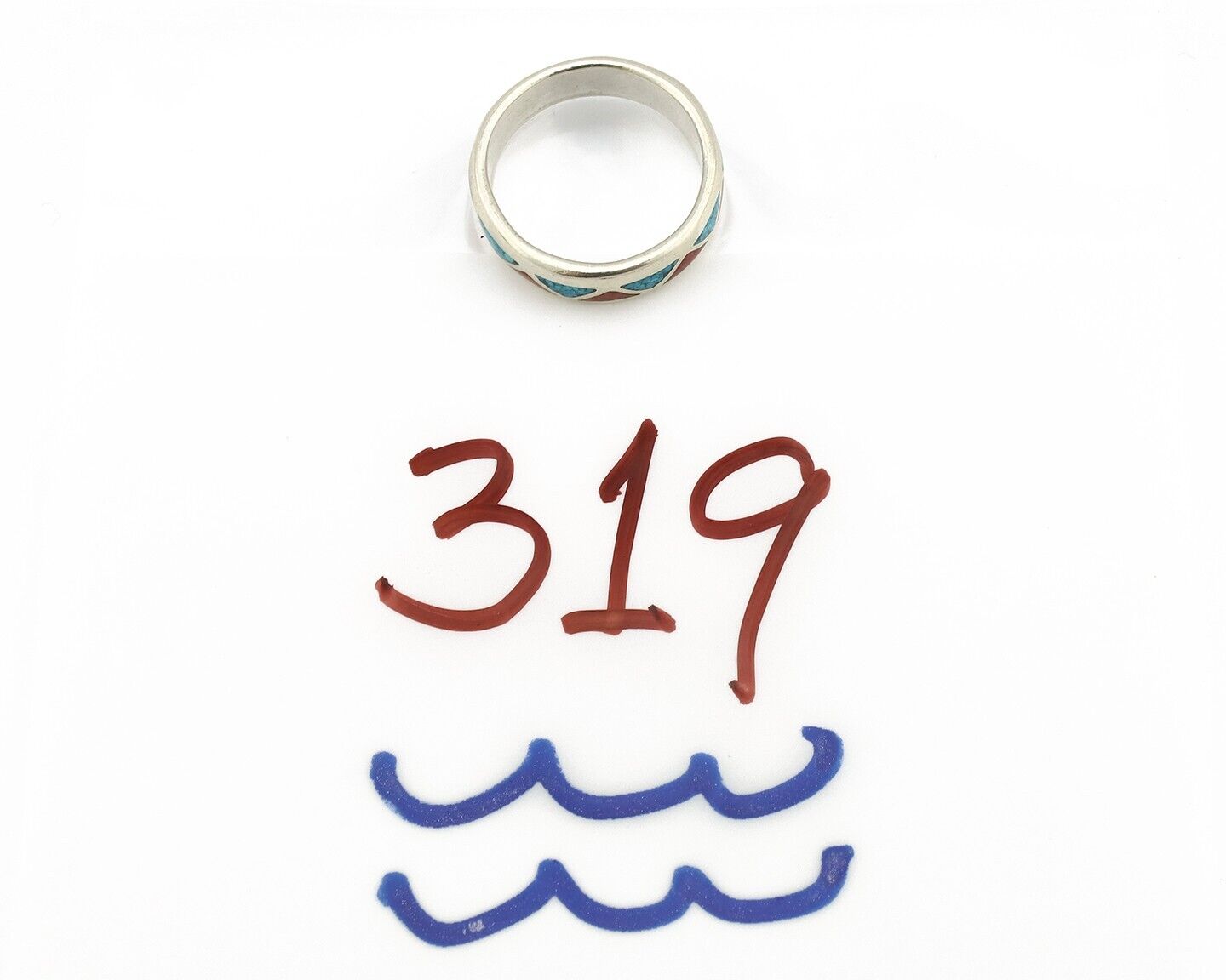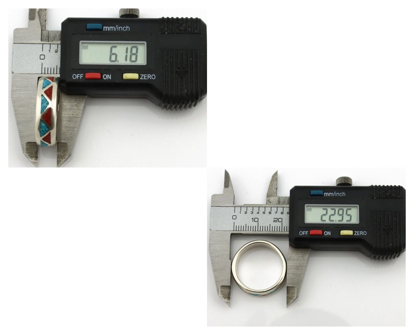 Navajo Ring 925 Silver Natural Turquoise & Coral Native American Artist C.80's
