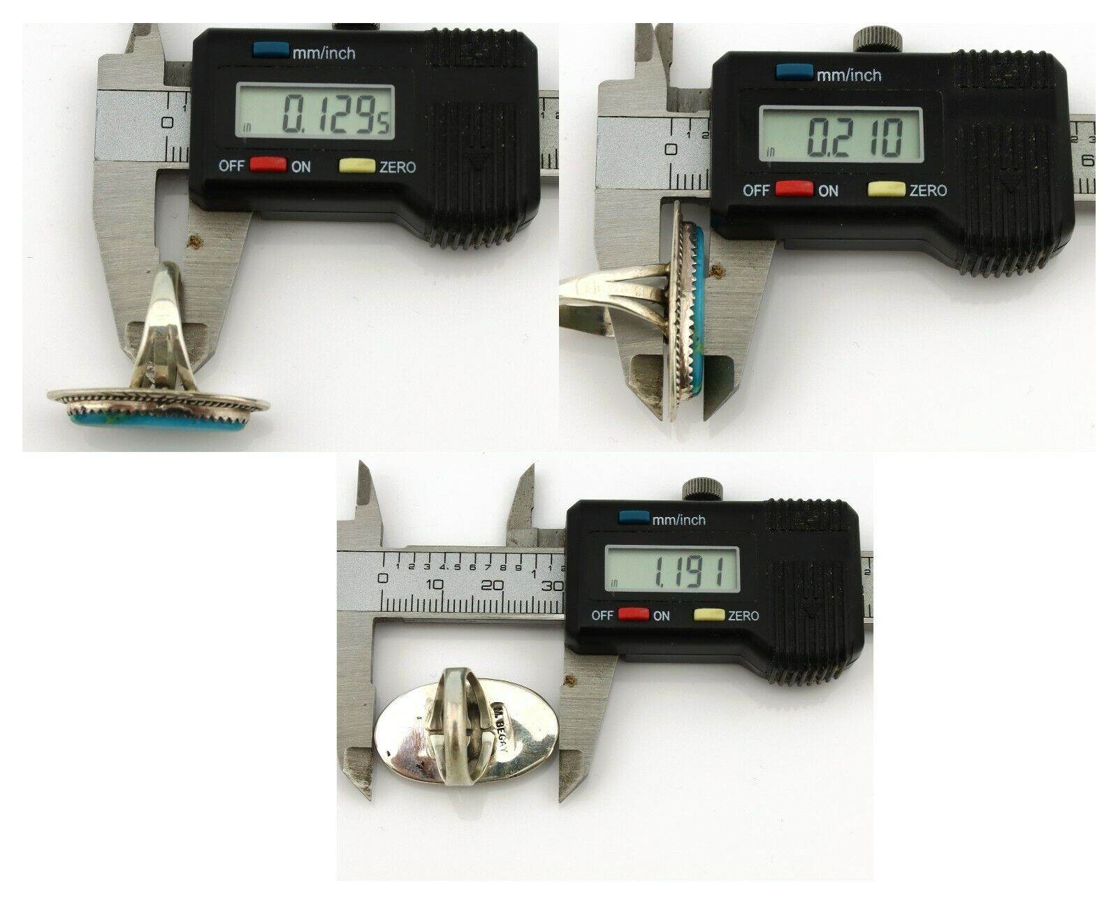 Navajo Ring .925 Silver Nevada Turquoise Artist Signed M Begay C.1980's