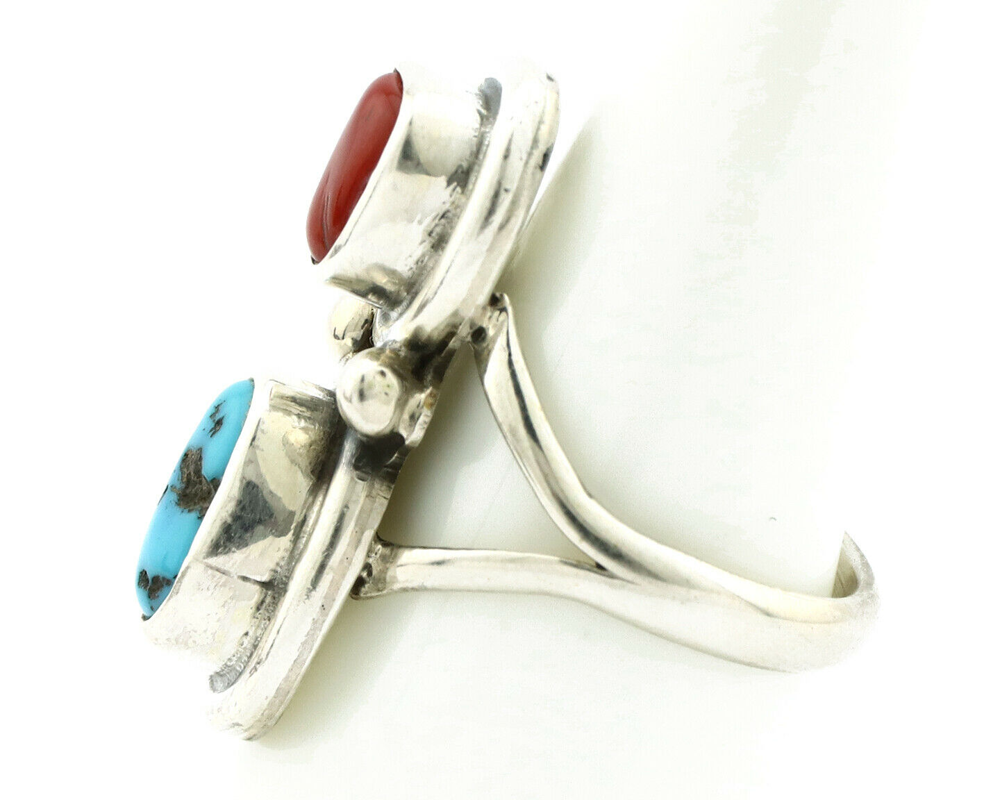 Navajo Ring .925 Silver Red Coral & Blue Turquoise Native Artist C.80's