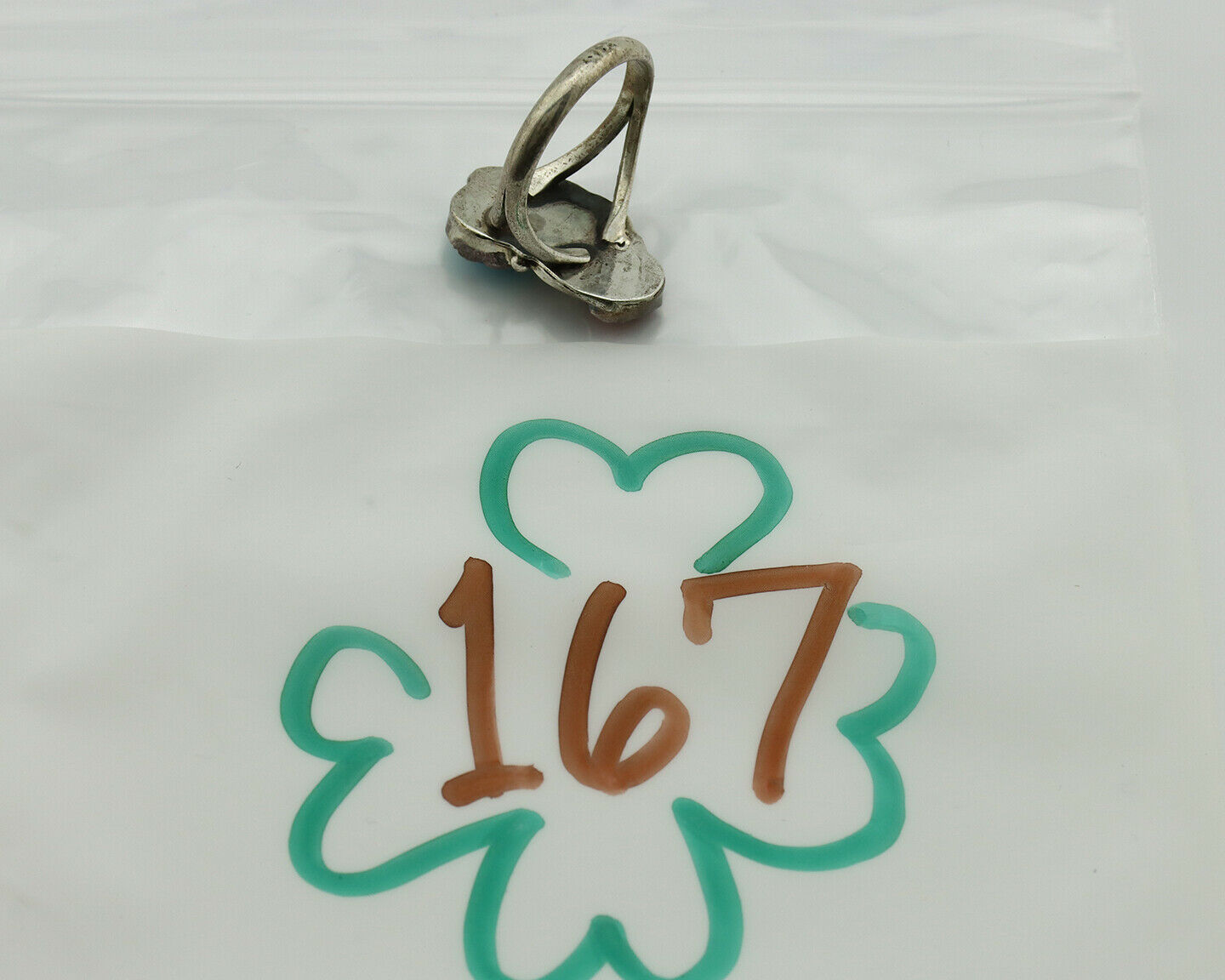 Navajo Ring .925 Silver Turquoise & Coral Native American Artist C.1980's