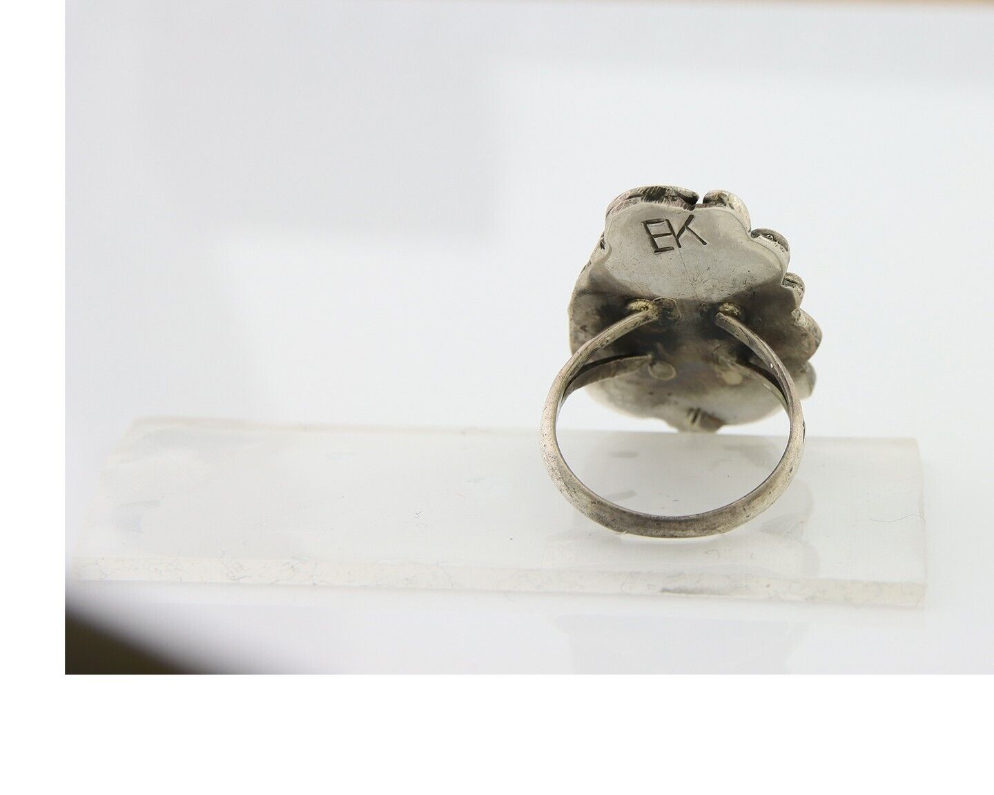 Navajo Ring .925 Sterling Blue Turquoise Artist Signed EK C.80's