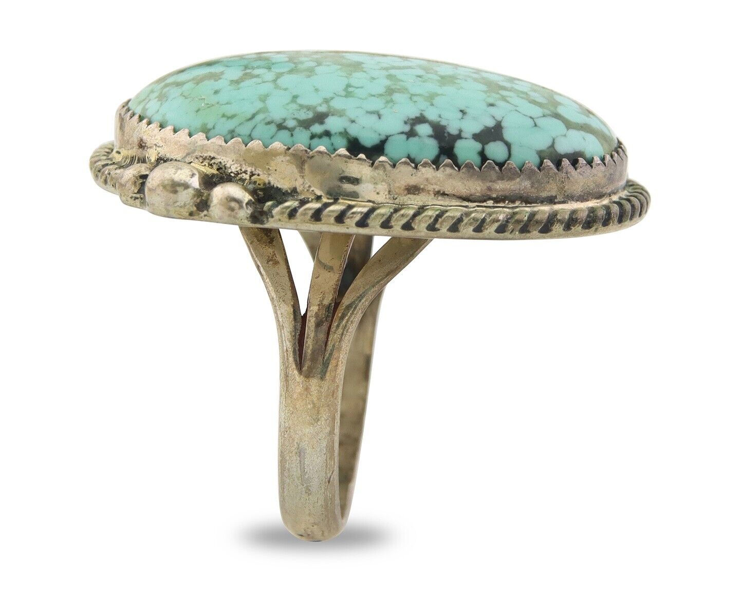 Navajo Ring 925 Sterling Natural Blue Turquoise Native Artist C.80's Size 8.75