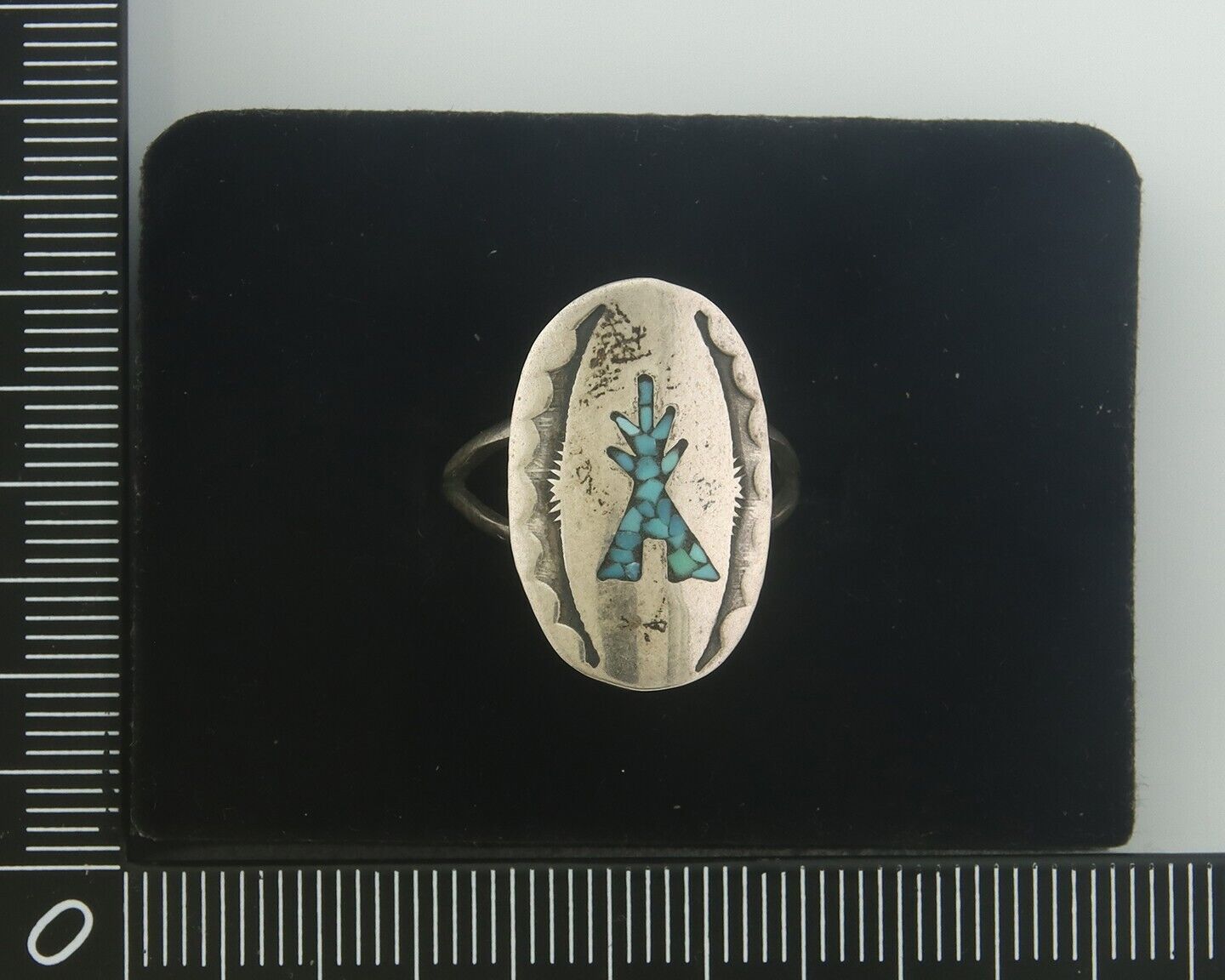 Navajo Ring 925 Sterling Natural Chip Inlay Blue Turquoise C.80's Size 6.0